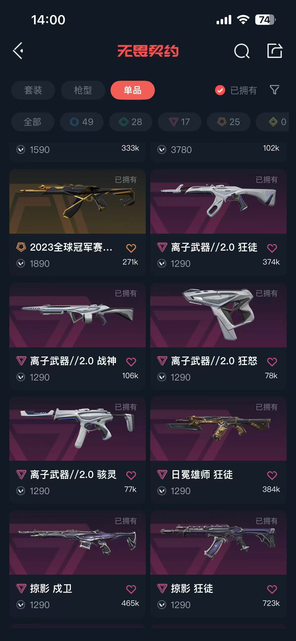 首页 > 租号大厅 > 无畏契约-wegame > wegame/wegame > 可排位❤6w库存❤11把ak❤22/23冠军套❤离子2.0❤掠夺1.0❤紫金爪❤剥皮小刀