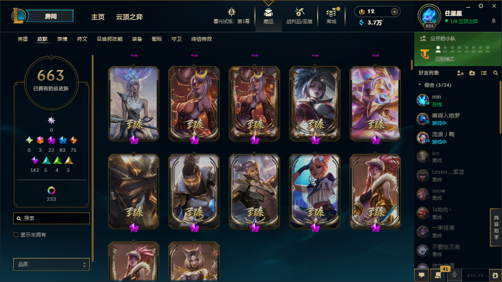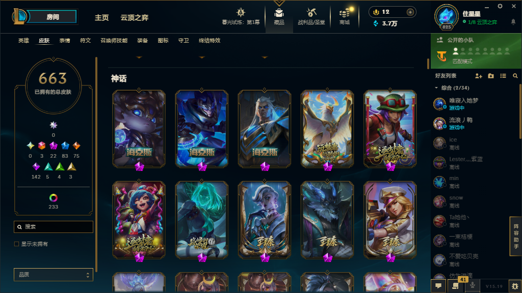 妹子号,黄金2满英雄,900个皮肤炫彩200,3终极,22神话,83限定,75传说