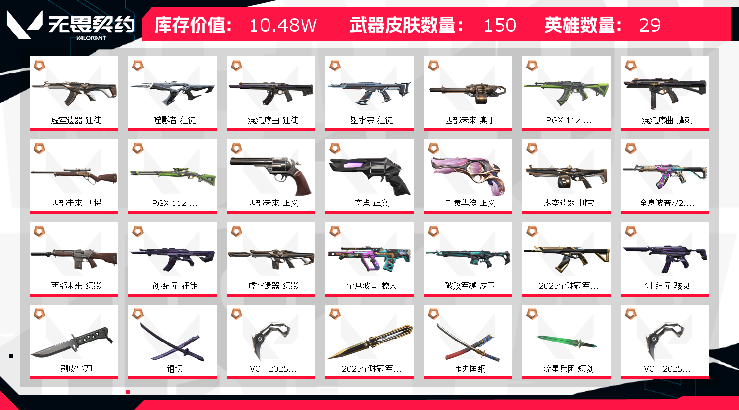 1;艾沃莉的梦之翼 奥丁,西部未来 奥丁,剥皮小刀,镭切,VCT 2025 爪刀,天界神兵//2.0 幻影,盖亚的复仇 狂徒,