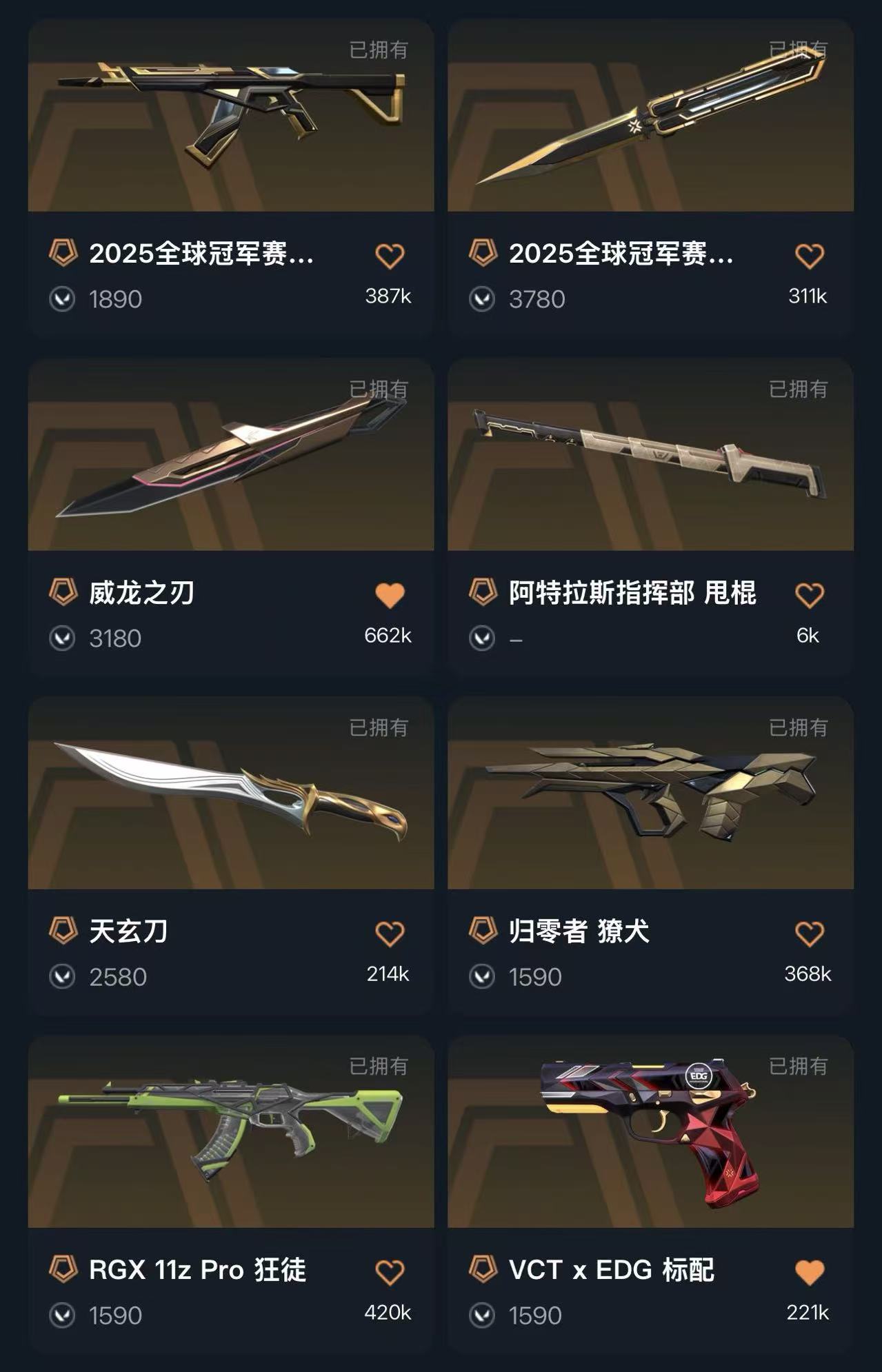 冻结秒解✨25冠军套✨显卡狂徒✨威龙之刃✨紫金爪刀✨千灵华绽幻影✨EDG标配