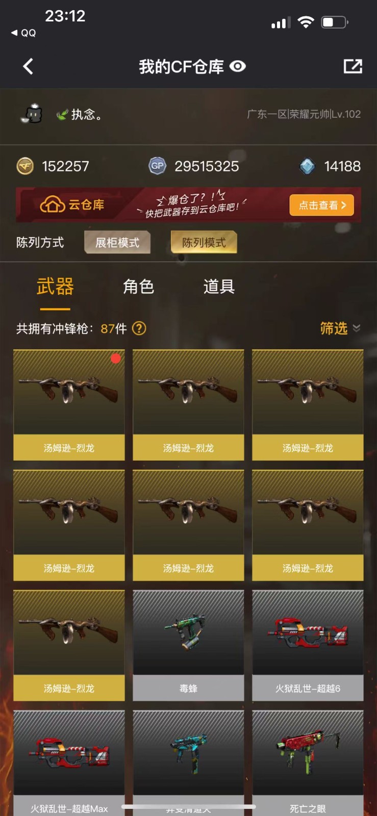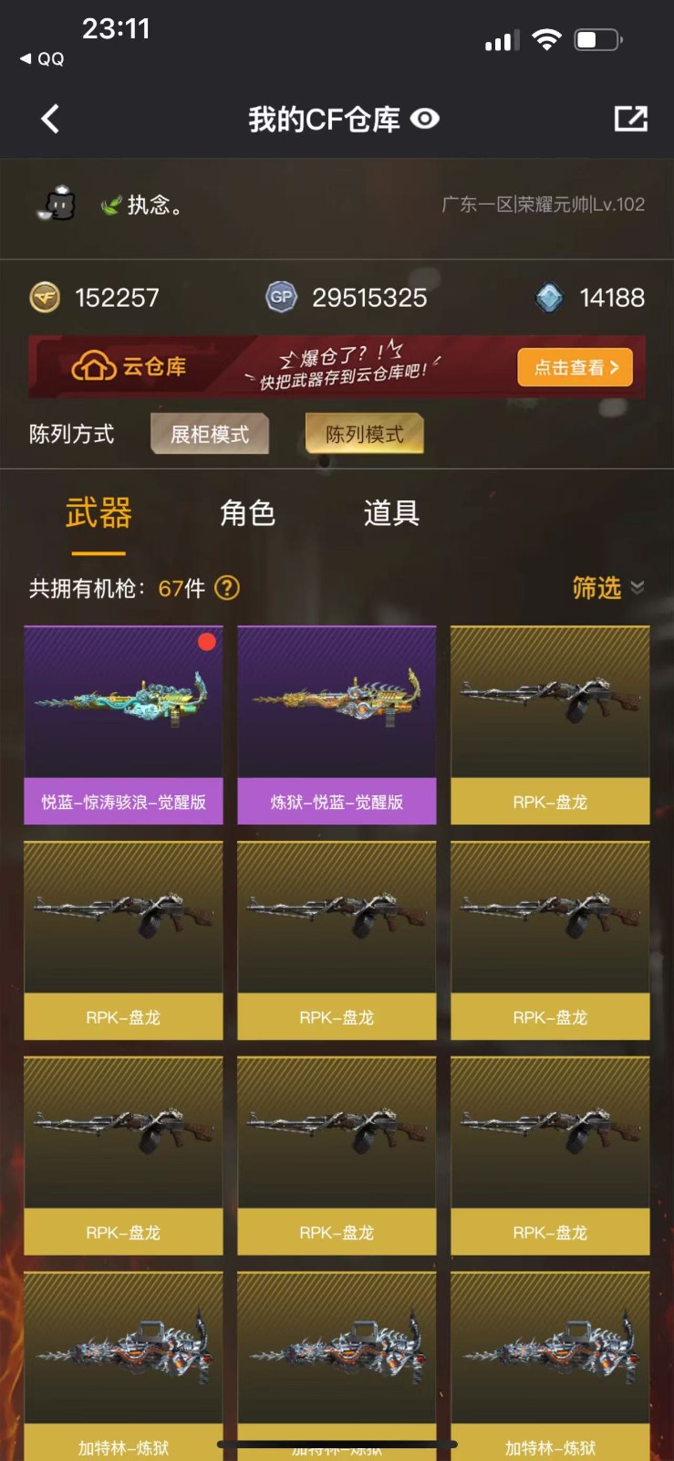 荆棘,云悠悠,传说星骇,传说梦魇(大炮),王者星神,电竞荣光套,王者白虎,王者玄武,蝴蝶➕蛇影双娇(卡子弹专用),奇幻宇宙万象➕MAC-10-千针棘鲨,八面凌龙,天戎,荣耀世冠套,玄豹套,七烈七盘七炼狱,毁灭➕音效卡,裁决➕音效卡,黑骑士➕音效卡,皮肤不多,道具充足;USP-雷暴,荣耀世冠-柯尔特,传说星骇,电竞教官-云悠悠,RPK-盘龙,QBZ03-金色蔷薇,