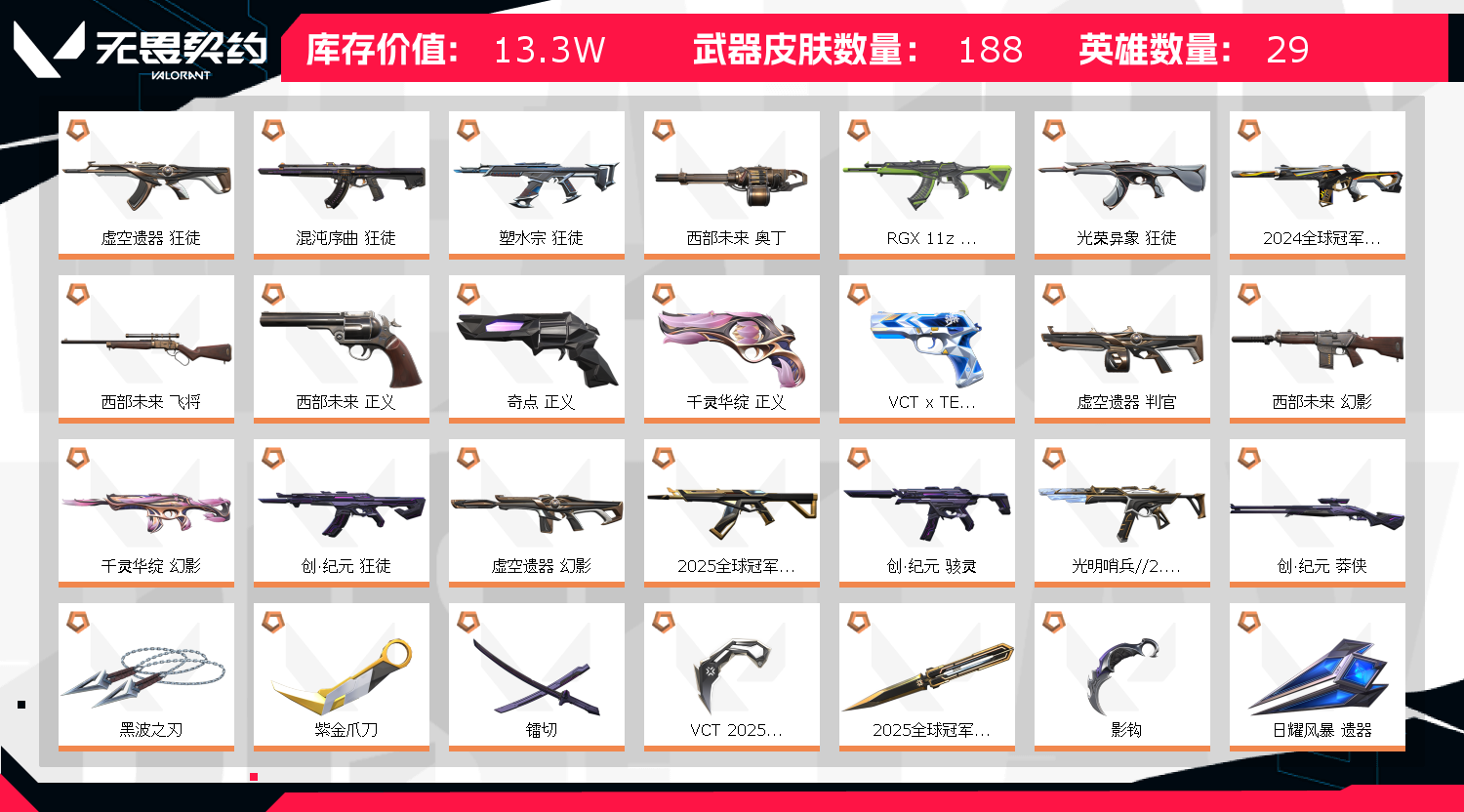 • 武器皮肤数量: 188