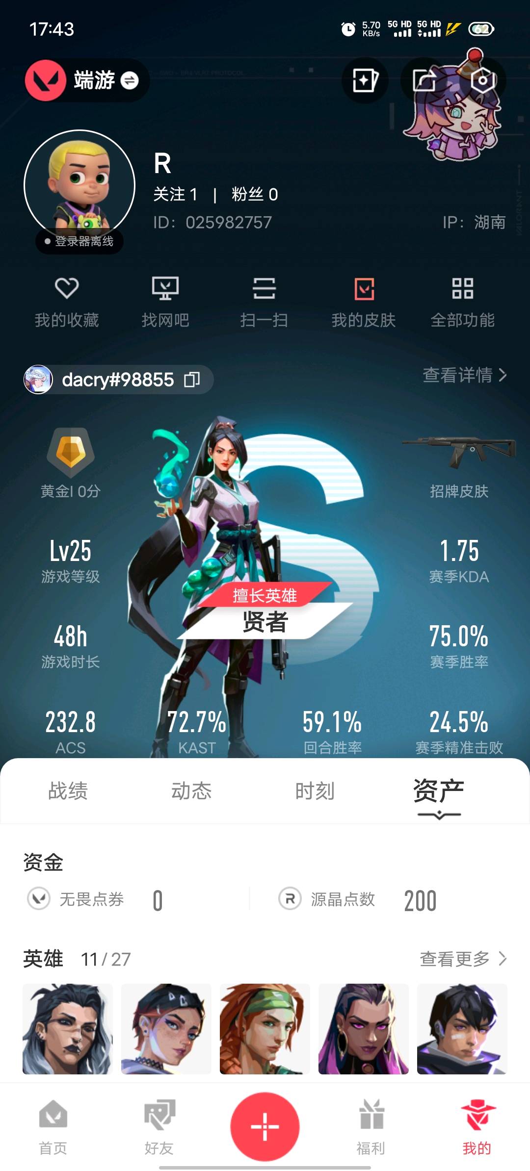 • 皮肤资产价值: 0