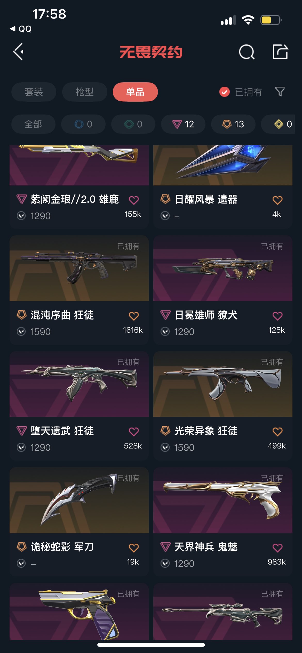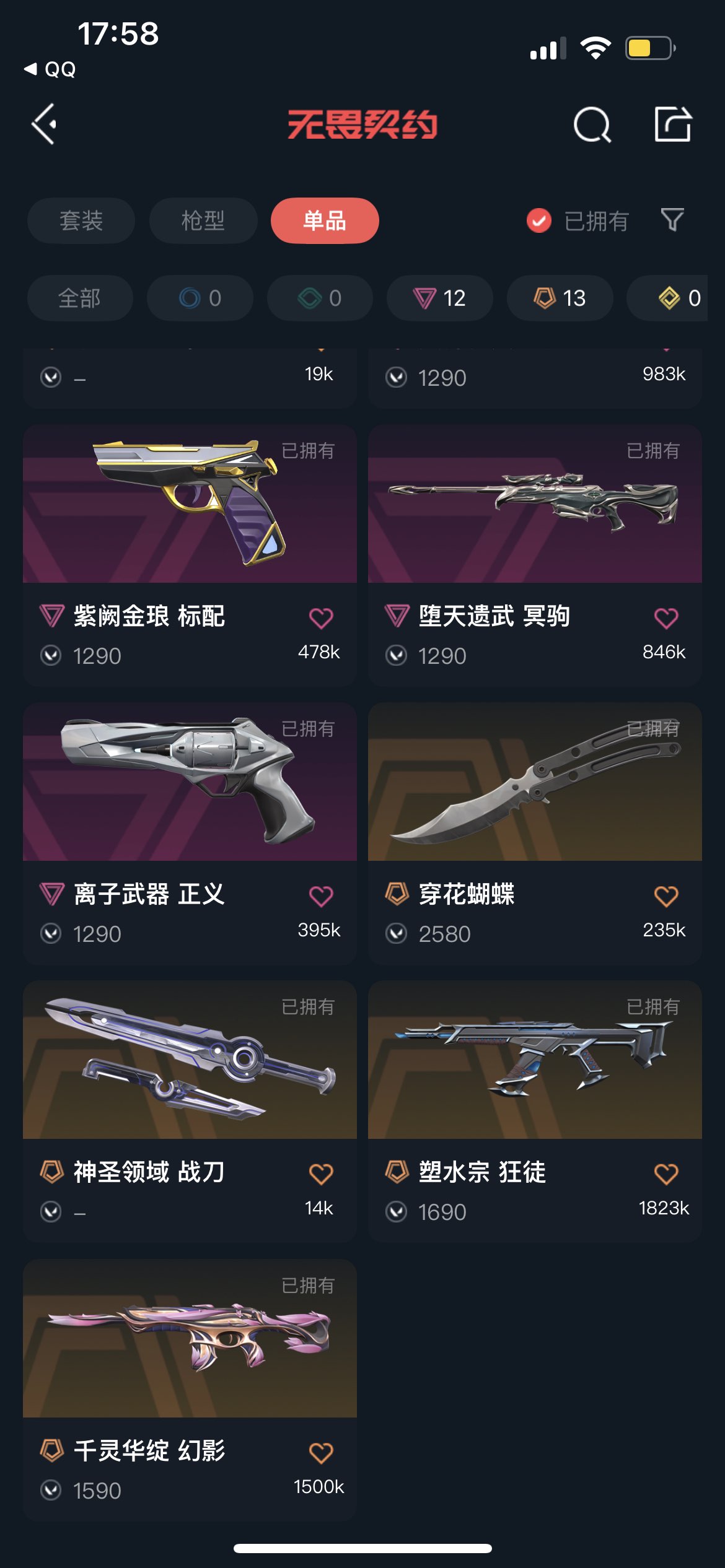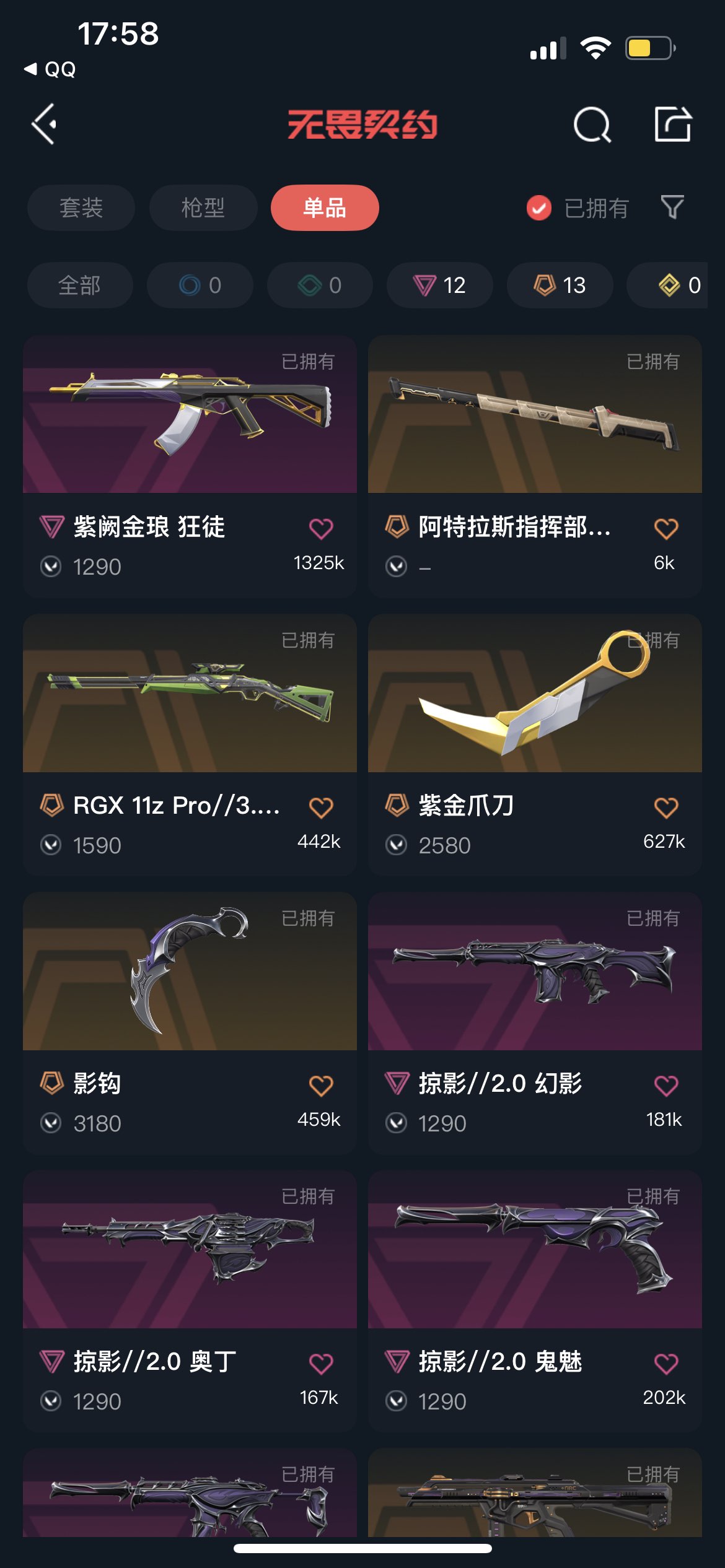 可排位 英雄23 武器皮肤数量21;紫金爪刀,紫阙金琅 狂徒,堕天遗武 狂徒,混沌序曲 狂徒,塑水宗 狂徒,光荣异象 狂徒,混沌序曲 蜂刺,