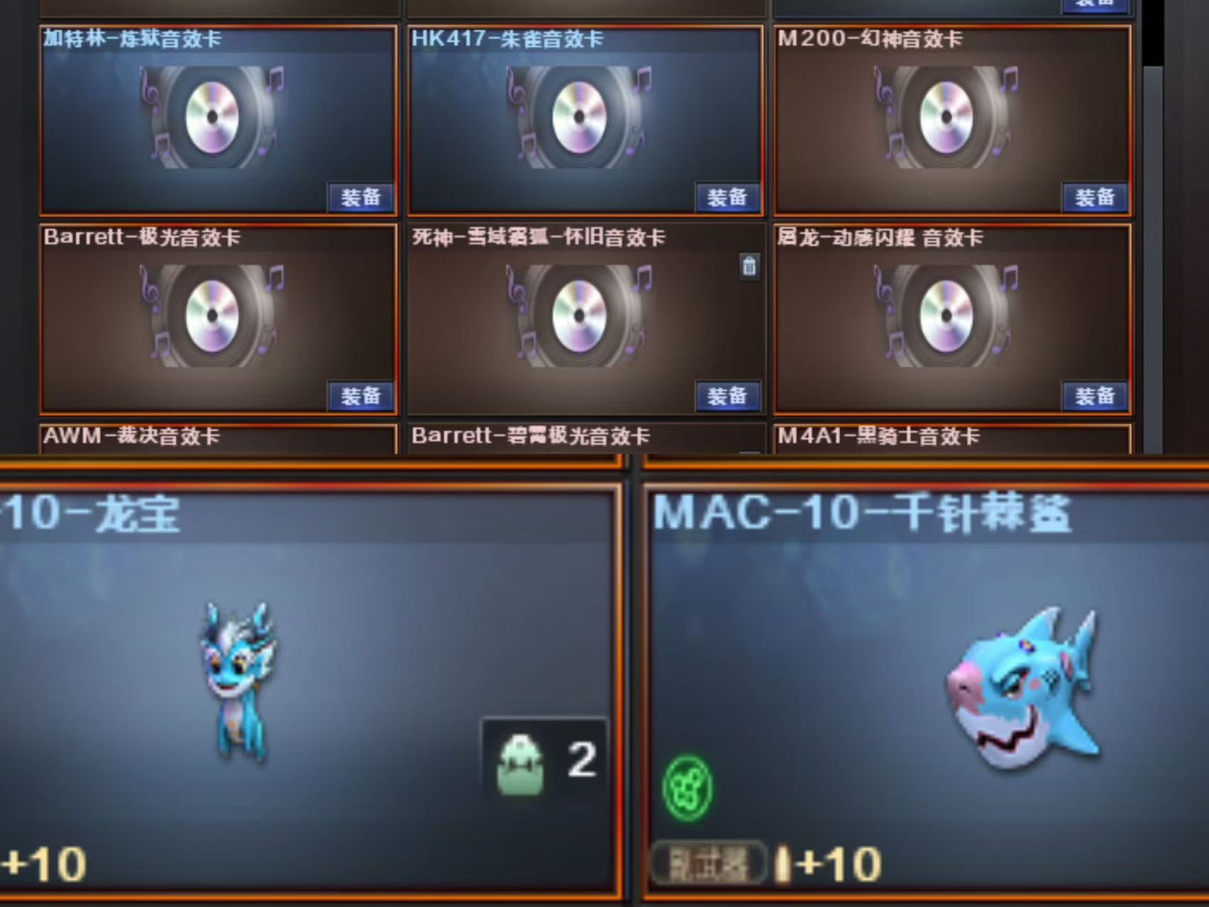 传说影煞 传说星骇 传说圣谕 泡泡象 玄武 炽芒蝶刃*2 四把小人冲锋枪 mac龙宝 鲨鱼