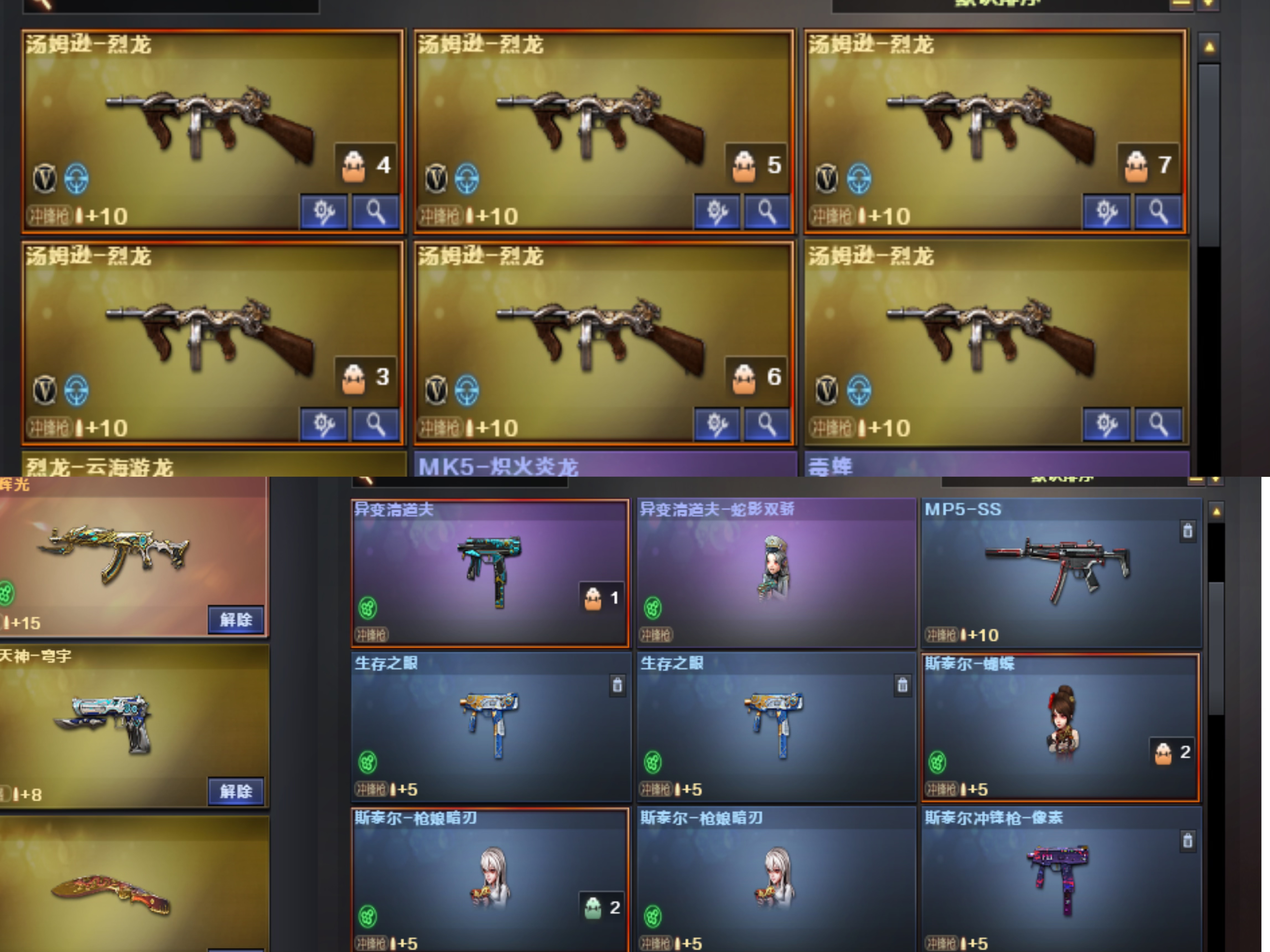 传说影煞 传说星骇 传说圣谕 泡泡象 玄武 炽芒蝶刃*2 四把小人冲锋枪 mac龙宝 鲨鱼;USP-雷暴,炽芒蝶刃,Knife-冠军之刃,沙漠玫瑰,传说影煞,传说星骇,隼,