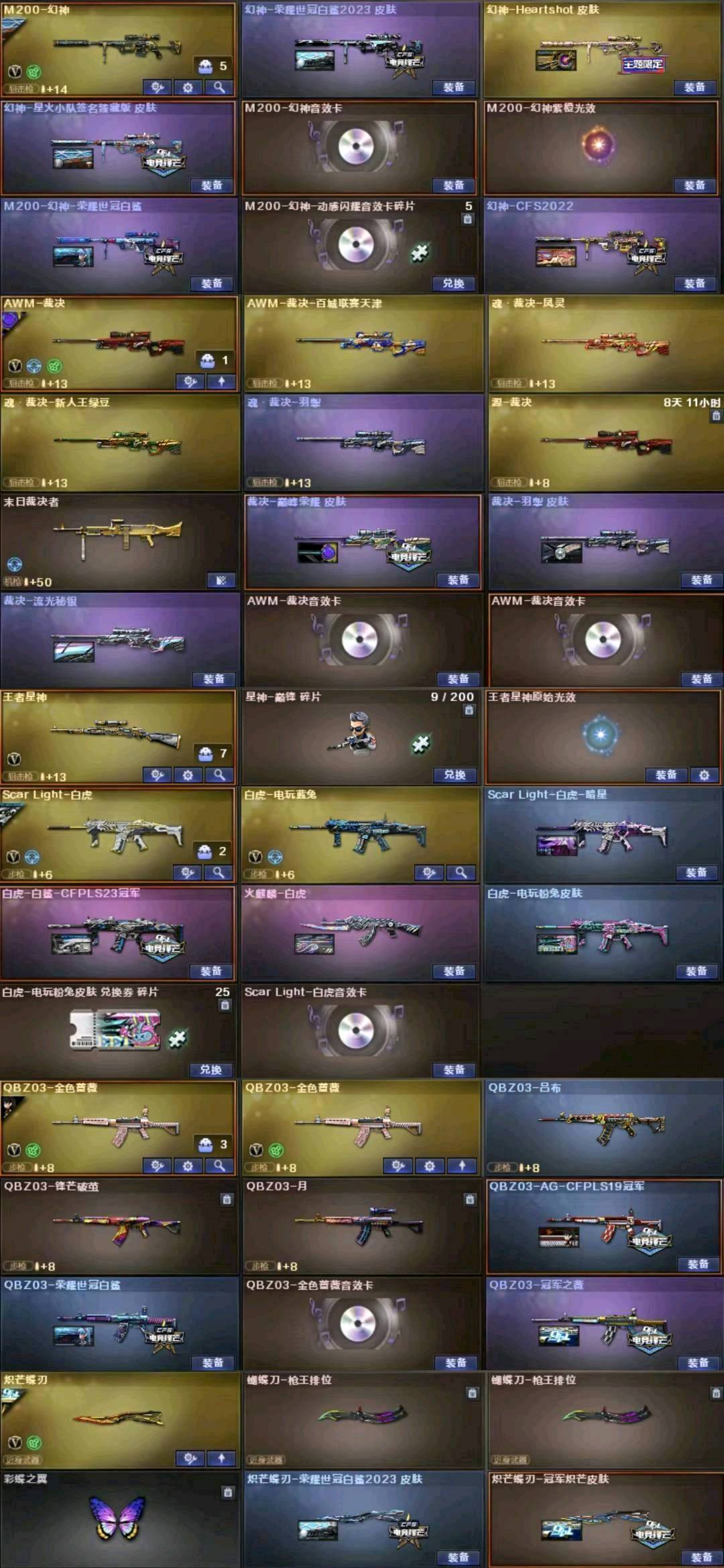 各位老板装备皮肤太多看截图 【温馨提示]此号价值数十万,已向公安机关报备,如有开G开辅助封号的,由平台提供,身份信息,证据和地址进行报警处理并依法追究责任!祝各位老板玩得开心。请使用官方启动,更快捷稳定上号。恶意下单维权及检测到外挂将无法再次下单!【温馨提示]排位比赛请勿中途退出游戏,一经发现拉黑处理。【温馨提示]如租号时长不足,请勿再开启排位或及时续租,避免禁排,如发现时长不足恶意开启排位,拉黑处理。[温馨提示]如遇到账号冻结,请申请号主协助,号主三分钟之内会解除。祝各位文明租号的租客身体健康,万事如意,玩的开心!;荣耀世冠-柯尔特,柯尔特-荣耀世冠白鲨2023,柯尔特-冠军之特,炽芒蝶刃,Knife-冠军之刃,RPK-盘龙,QBZ03-金色蔷薇,