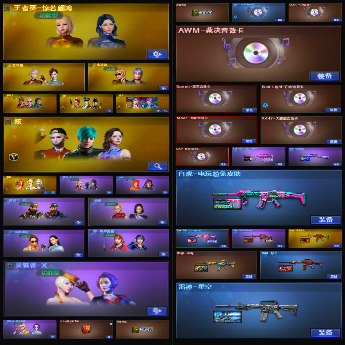 【V武器数128】【幻神三件套】【幻神1皮】【白虎三件套】【6烈龙】【竞技荣光套装X6套】【夜魔套装X1套】【幻灵套装X2套】【堕天神套装X7套】【堕天神套装X7套】【传说星骇】【传说光耀】【传说辉光】【M200-幻神】【幻神-宠儿-2021MVP】【M200-幻神音效卡】【M200-竞技荣光】【Kar98K-星神】【星神-璀璨皮肤】【AWM-裁决】【AWM-裁决音效卡】【Scar Light-白虎】【白虎-电玩粉兔皮肤】【Scar Light-白虎音效卡】【QBZ03-金色蔷薇】【QBZ03-天罚】【QBZ-03-王者蔷薇-觉醒版】【FAMAS G2-天戎】【王者玄武】【M4A1-雷霆王者-觉醒版】【HK417-朱雀】【M4A1-堕天神】【USP-雷暴】【荣耀世冠-柯尔特】【柯尔特-竞技荣光】【COP-堕天神】【COP 357-雷霆王者-觉醒版】【加特林-炼狱】【RPK-盘龙】【炼狱-风暴】【魂·炼狱-玩具枪】【汤姆逊-烈龙】【传说星骇】【电竞教官-云悠悠】【迷迭香】【王者-迷迭香】【王者-瞳-闭月羞花】【王者葵-惊若翩鸿】【王者玲珑】【王者凌霄】【修道士】【樱】【雨棠】【炫】【魅影】【M4A1-雷神】【雷神-宠儿-2019MVP】【雷神-荣耀世冠AG】【雷神-烈虎皮肤】【雷神-虎将】【雷神-星空】【雷神-暗月】【M4A1-雷神音效卡】【AK47-火麒麟】【火麒麟-白虎】【AK47-火麒麟-传奇EVEN】【火麒麟-华夏之心】【火麒麟-荣耀世冠AG】【火麒麟-平天大圣】【火麒麟-百城】【AK47-火麒麟音效卡】【M4A1-黑骑士】【黑骑士耀金皮肤】【黑骑士-摸金校尉】【黑骑士-摸金校尉】【M4A1-黑骑士音效卡】【Barrett-毁灭】【毁灭-BEAN-2020MVP】【毁灭耀金皮肤】【毁灭-风暴】【毁灭-黑大圣皮肤】【Barrett-毁灭音效卡】;USP-雷暴,荣耀世冠-柯尔特,传说星骇,电竞教官-云悠悠,RPK-盘龙,QBZ03-金色蔷薇,M200-幻神,