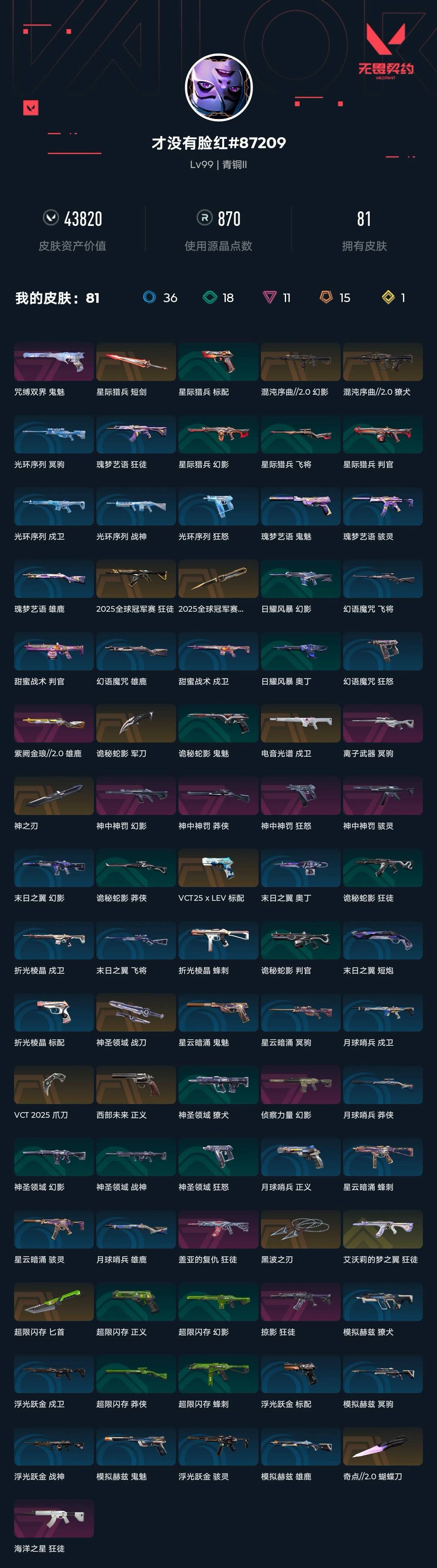 封号必究;黑波之刃,VCT 2025 爪刀,盖亚的复仇 狂徒,掠影 狂徒,侦察力量 幻影,离子武器 冥驹,西部未来 正义,