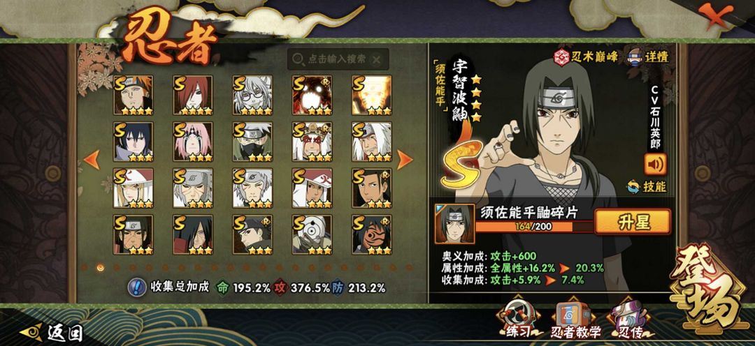 真4160战力⭐v15,全忍者⭐全通灵✨侠隐佐助⭐五影会谈✨多奥义✨4000w✨多时装皮肤✨