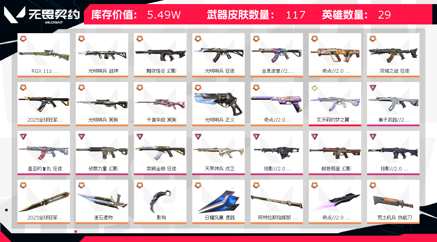 首页 > 租号大厅 > 无畏契约-wegame > wegame/wegame > 5.5w库存✨25冠军套✨双城套✨掠夺+奇点2.0套哨兵套✨掠夺爪✨猫猫盖亚紫金狮子离子狂徒侦查幻影