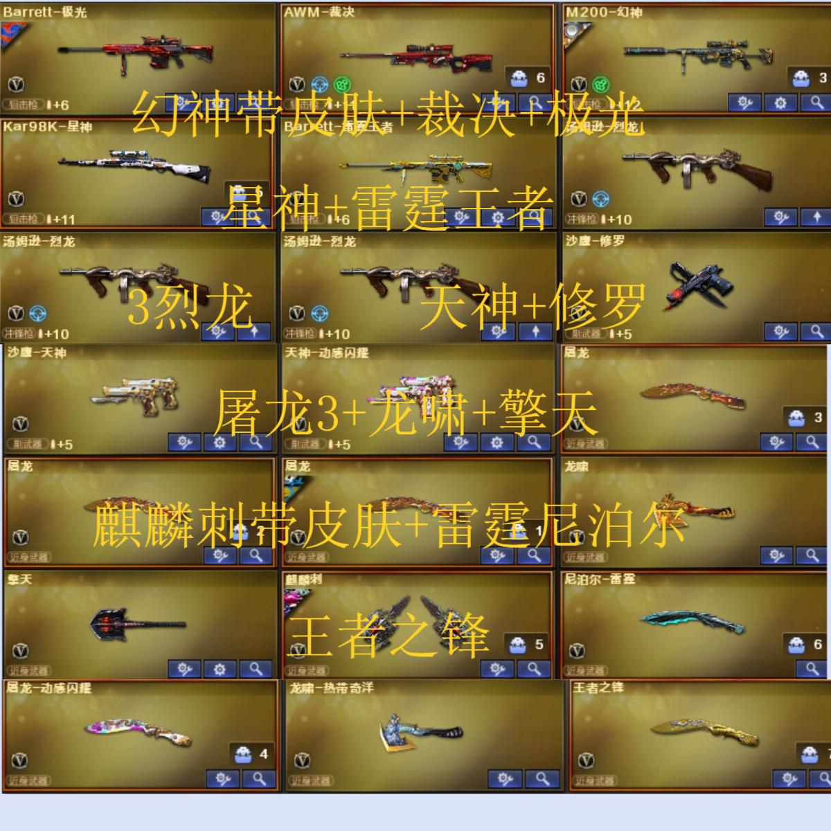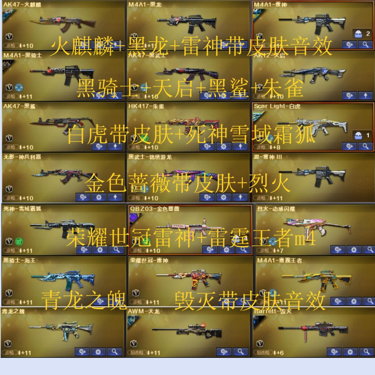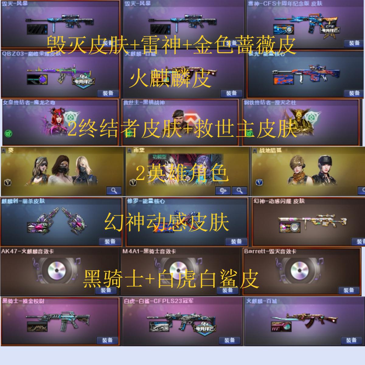 62v9王者可排位【M200幻神+幻神动感闪耀皮肤/荣耀世冠-雷神/Kar98K-星神/HK417-朱雀/Scar Light-白虎/QBZ03-金色蔷薇/青龙之魄/3把死亡之眼/3烈龙/4修罗/天神/1套雷霆雷/1套竞技荣光雷/1套雷霆王者雷/生存之眼/金刚伞/】【火麒麟音效卡/黑骑士音效卡/毁灭音效卡/死神-雪域霜狐-怀旧音效卡/】【/雷神-荣耀之魄/屠龙-荣耀之锋/毁灭-荣耀之怒/ScarLight-白虎-冠军之虎皮肤/QBZ03-巅峰荣耀皮肤/雷神-CFS十周年纪念版皮肤/毁灭-SV-CFPLS16冠军/雷神-传奇N9/白虎-白鲨-CFPLS23冠军/黑骑士-摸金校尉/毁灭-风暴/火麒麟-百城/极光-能量核心/修罗-星空/无影-能量核心/天龙-能量核心/毁灭-青帝/火麒麟-心动糖果/雷神-能量核心/黑龙-暗月/火麒麟-雷神/毁灭-神秘黑洞皮肤/毁灭-墨兰 皮肤/麒麟刺-萌杀皮肤/修罗-能量核心/AWM-天龙-传奇白鲨/火麒麟-CFSTAR/火麒麟-平天大圣/】【四防】王者空/葵/雨棠/战地猎狐/新海豹突击队/葵-赛博朋克/零-热舞青春/】【/M4A1-雷霆王者-觉醒版/Barrett-雷霆王者-觉醒版/王者蔷薇/王者之锋-觉醒版/天龙-曼陀罗/冰龙粉碎者-白马银枪/激光毁灭者-超越2/激光毁灭者III/激光毁灭者III-白马银枪/KAC-青曜/乱世-超越5/神圣爆裂者-末日III/征服者-超越3/阐释者III/巡航者/】【猫耳头盔/烟雾保护头盔/战舰头盔/闪光护目镜/战舰护目镜/透明护目镜/战舰玩偶/超级背包3-7/全能枪王背包/战舰背包/炫彩背包/战舰水壶/战舰军袋/A背包套装扩展券/全背包/步枪弹匣长时效/永久防弹衣防弹头盔手雷包C4工具钳;QBZ03-金色蔷薇,M200-幻神,Scar Light-白虎,Kar98K-星神,