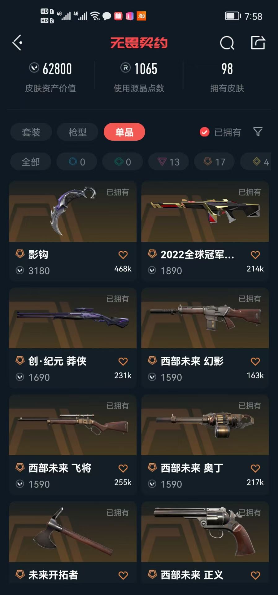 西部未来套🔥掠影2.0套🔥般若假面套🔥塑水宗套🔥上古龙炎套🔥22冠军/侦察幻影🔥显卡爪