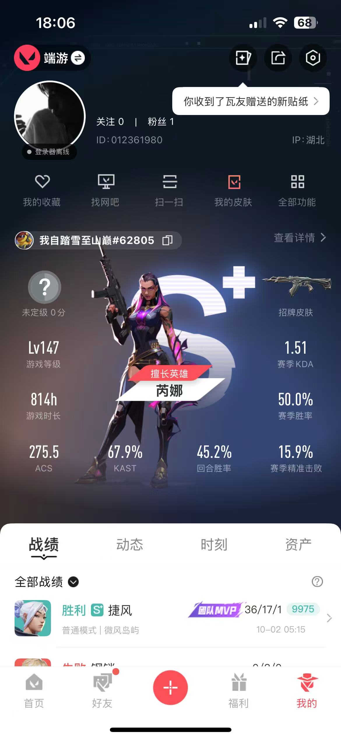 • 游戏区服:无畏契约-wegame / wegame / wegame