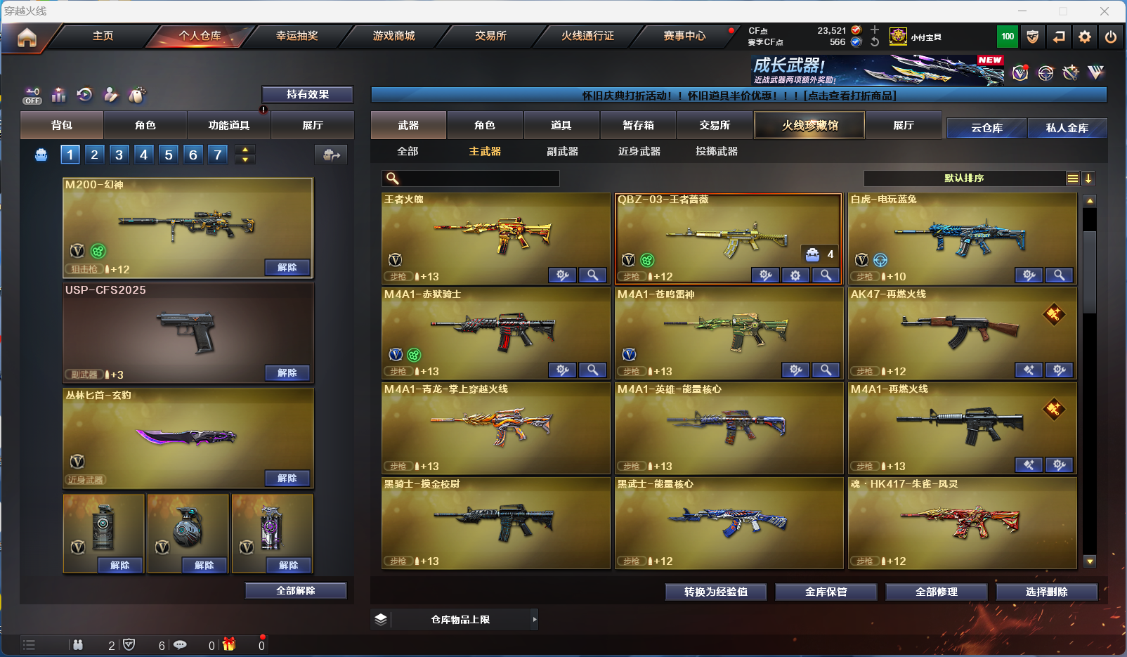 共建美好租号平台>>>>>> 本游戏账号:英雄武器61个; 王者武器12个。 装备不多,但是主武器、副武器、近身武器够用 拥有完美游戏体验。重要 得是,特殊装备有:AK47-火麒麟、M200-幻神、M4A1-玫瑰精灵、加特林-炼狱、王者火魄、麒麟刺、炫金天龙、炫金武士、王者之击、王者之幻、王者之心、王者之魄、王者雷怒、堕天使、王者-瞳-闭月羞花、M4A1-黑骑士音效卡、生化弹匣、等,随意畅选。;RPK-盘龙,QBZ03-金色蔷薇,M200-幻神,