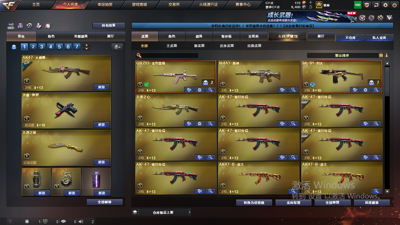 6烈 幻神套 星神 具体看图 低价爽玩 租了不亏;USP-雷暴,RPK-盘龙,QBZ03-金色蔷薇,Scar Light-白虎,Kar98K-星神,