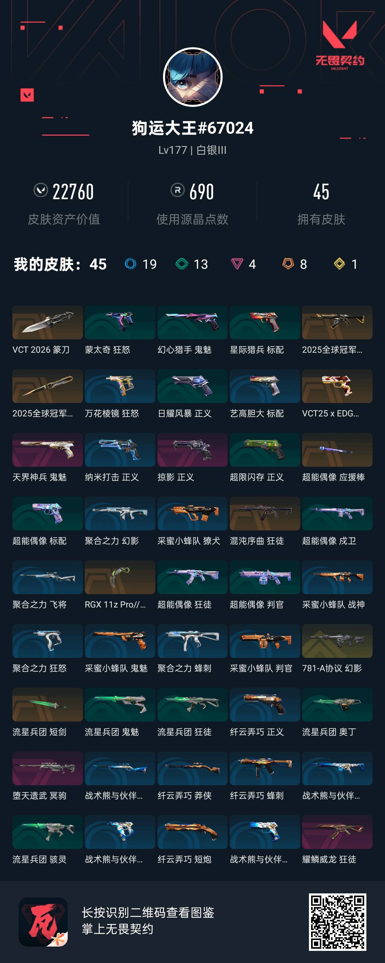 45个皮肤 可排位 25冠军套 VCT26 显卡爪标配EDG天界鬼魅掠夺正义狂徒混沌威龙幻影781