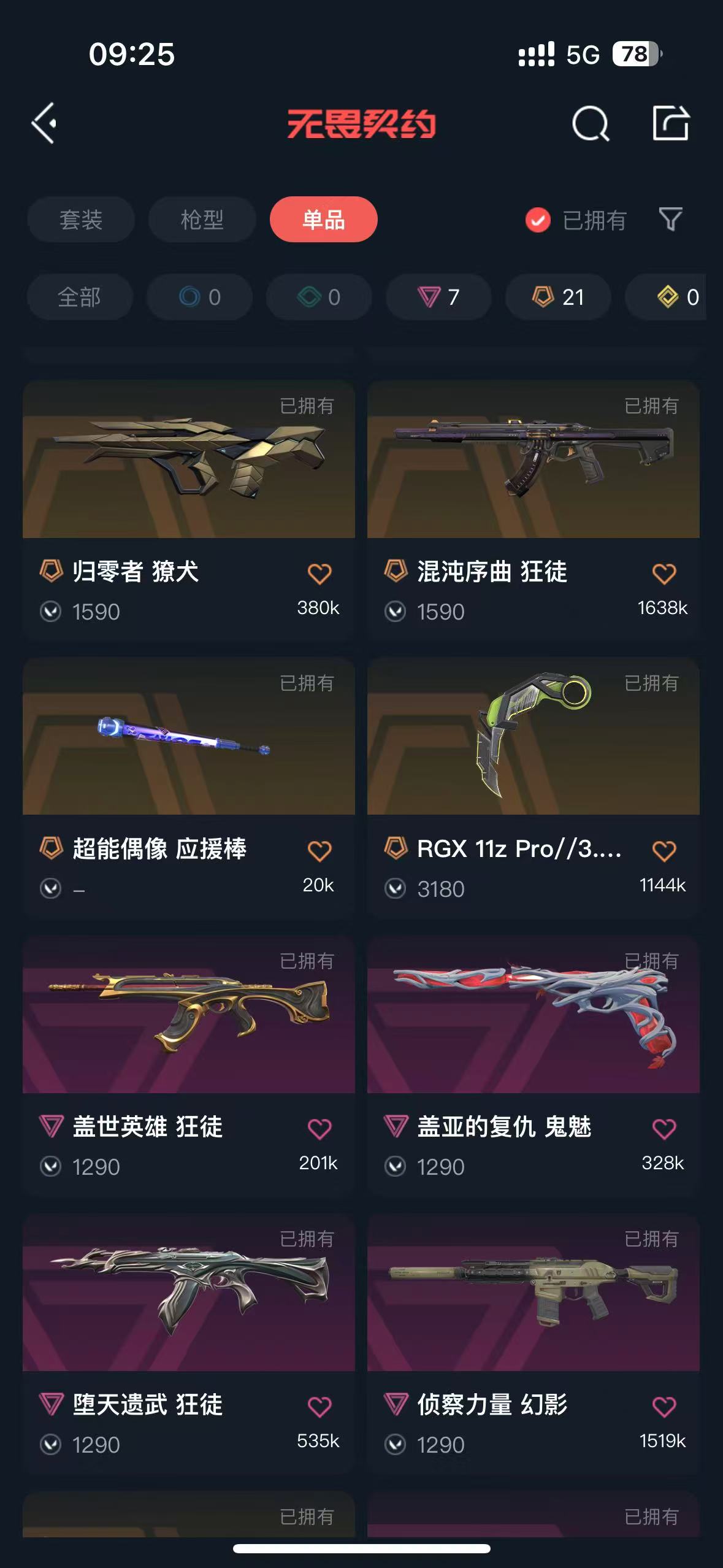 • 传奇数量: 21