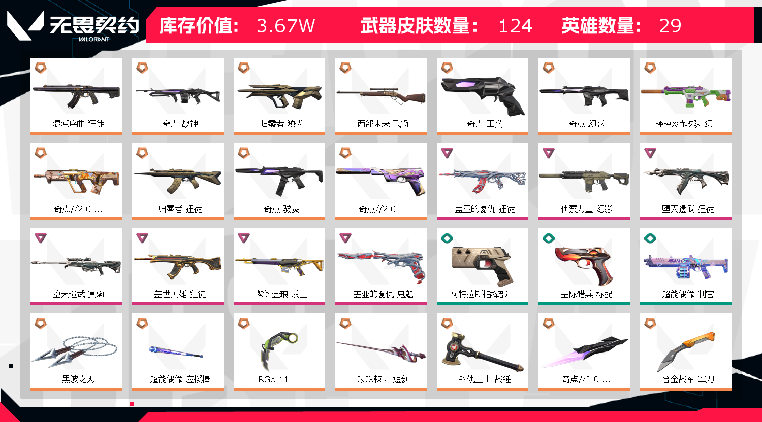 • 武器皮肤数量: 124