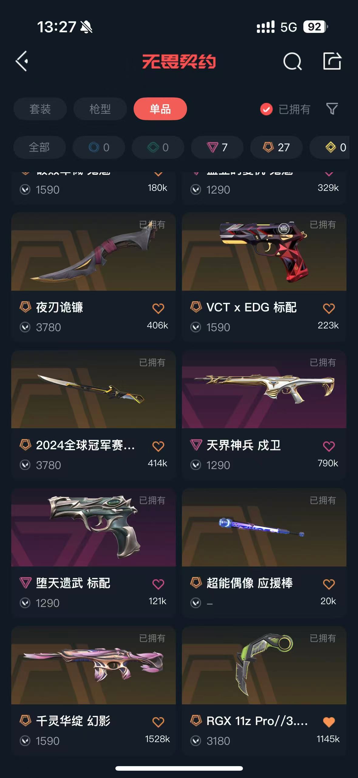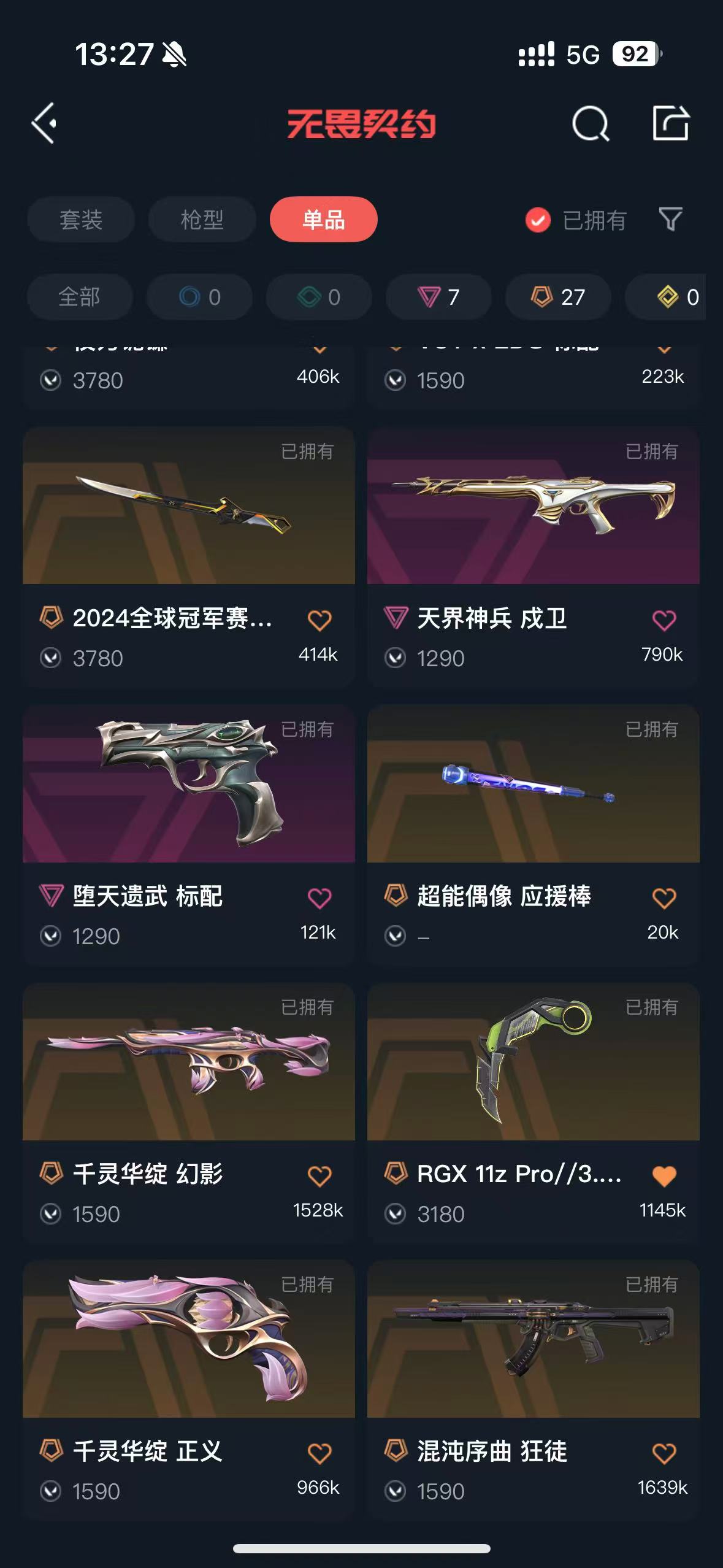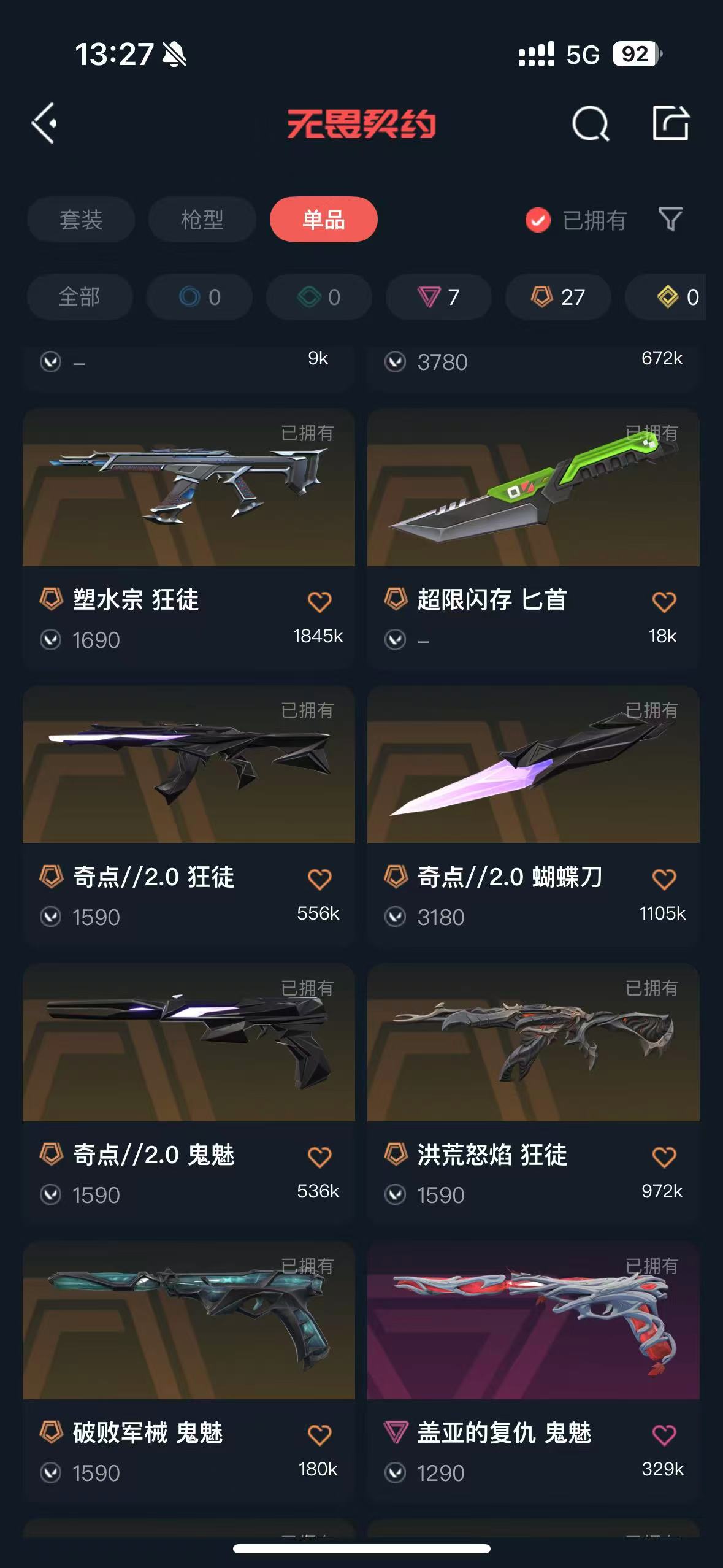 • 传奇数量: 27