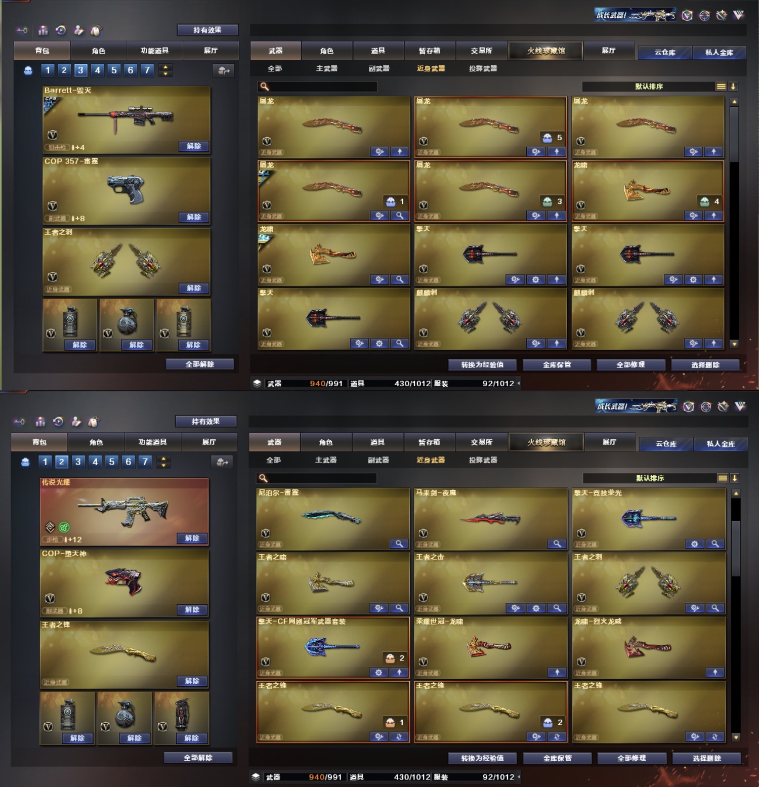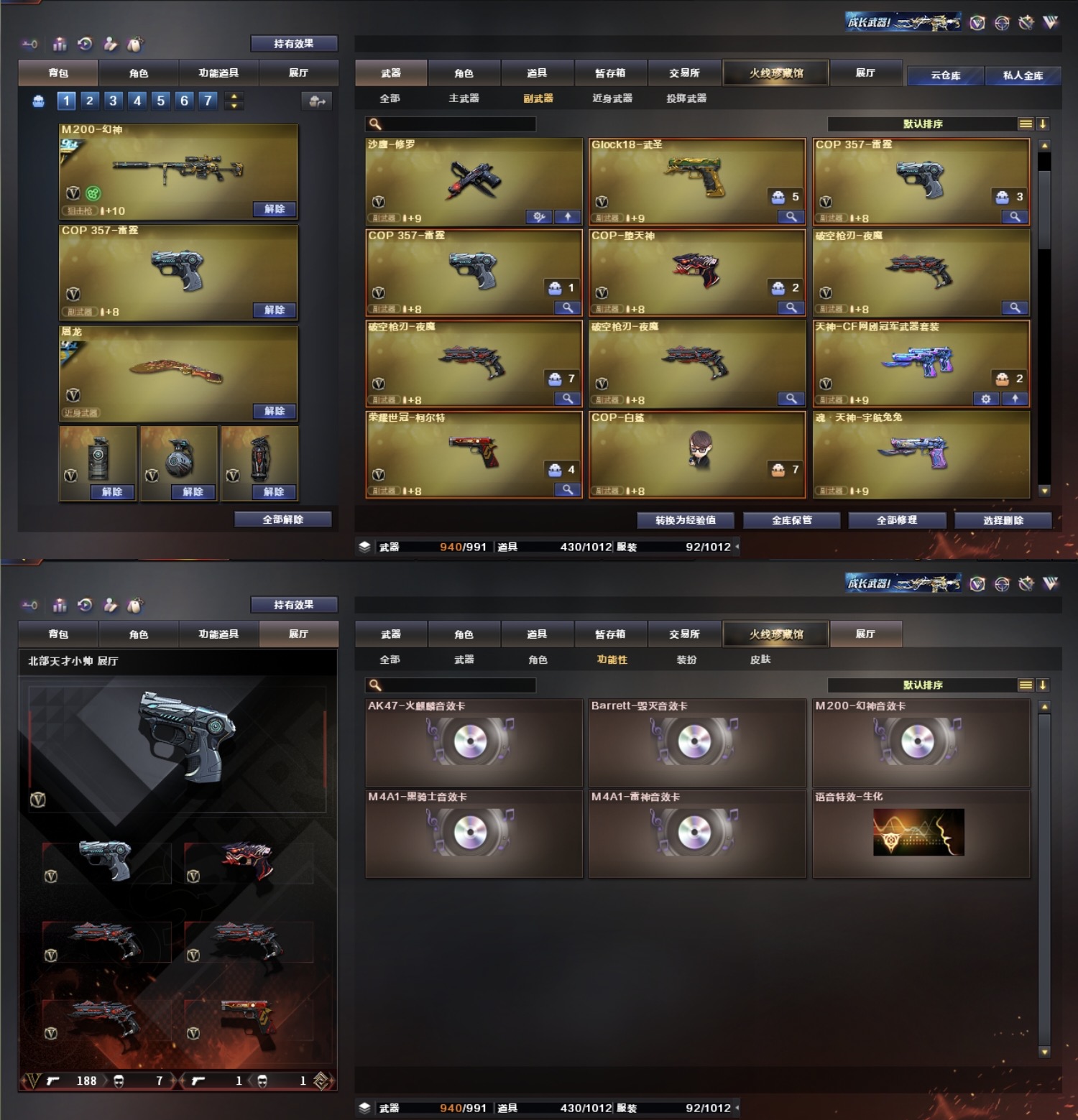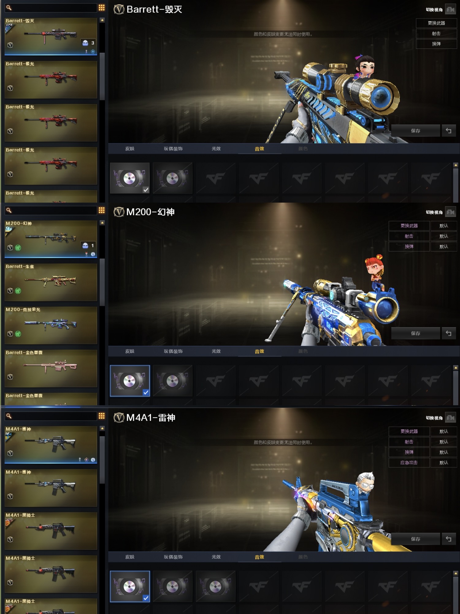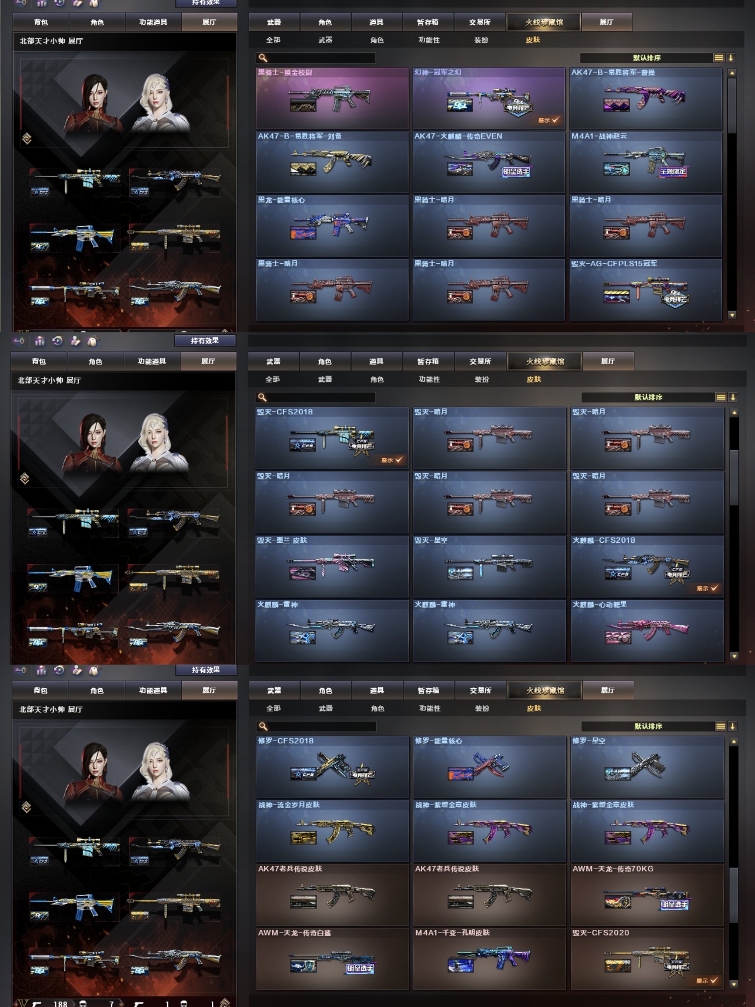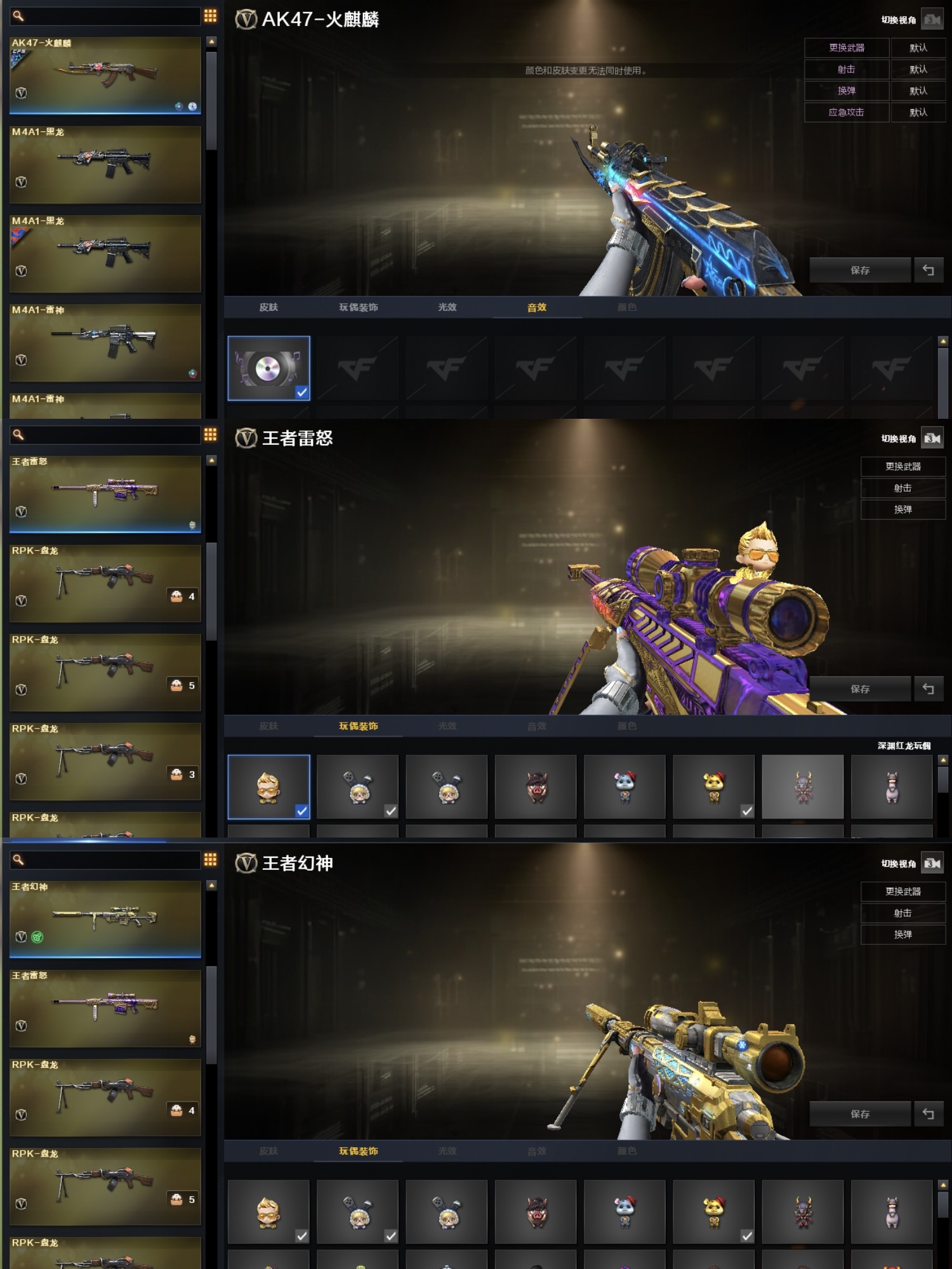 幻神三件套 雷神三件套 传说女帝 7质量副;荣耀世冠-柯尔特,传说女帝,RPK-盘龙,QBZ03-金色蔷薇,M200-幻神,