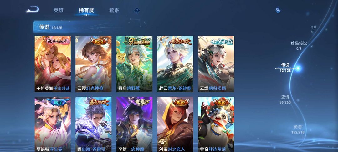 上不去看最后一张图贵族10,635皮伽罗典藏112传说,群星魔术团,落雪白狼,龙年全满,曦炫引,战鼓燎原时之奇旅,隐龙天啸,妄想实况,琥珀纪元