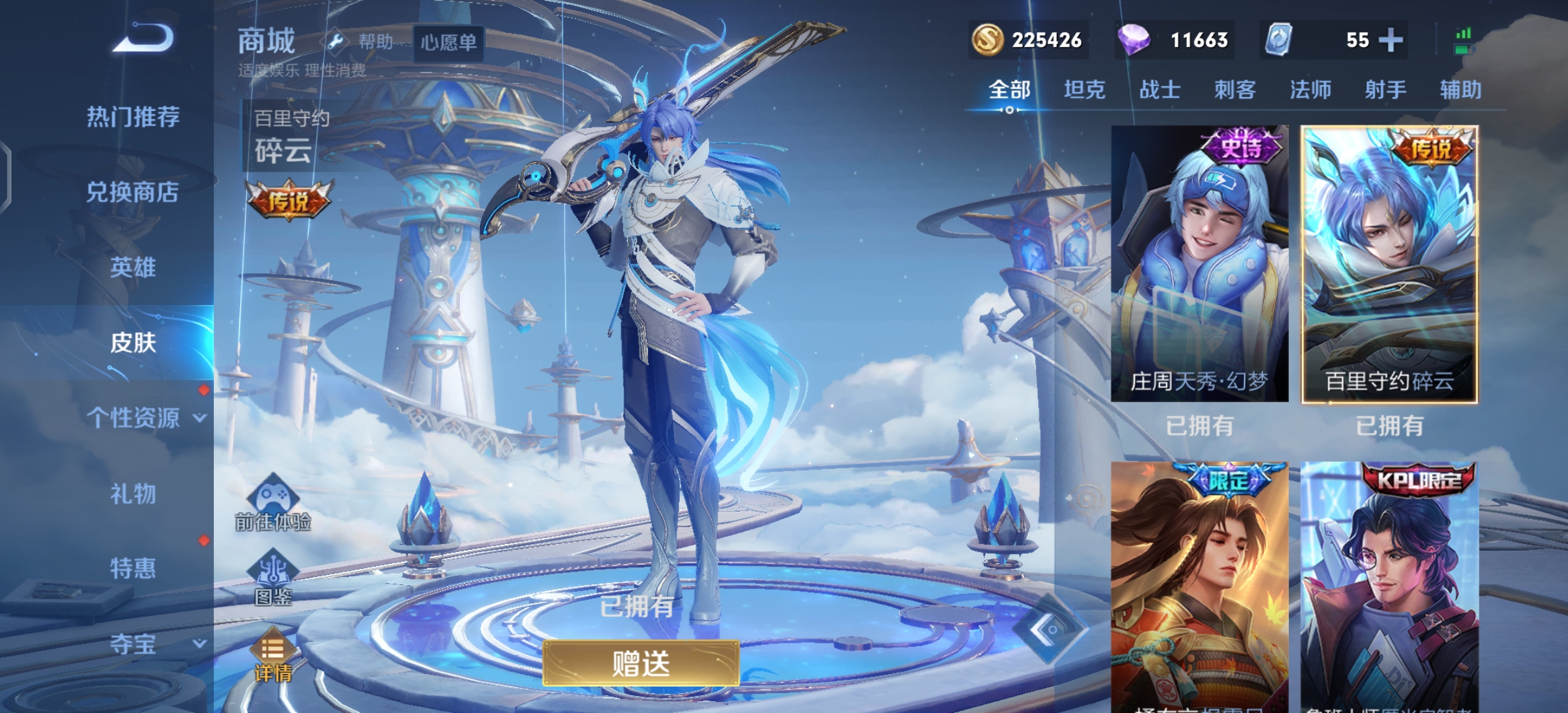 V11✨732皮肤✨神罪✨山海经天机白泽✨全套死神联动✨全套穆夏✨馥梦繁花✨美神临世✨库洛米✨大耳狗✨全荣耀水晶✨螭龙剑✨全无双