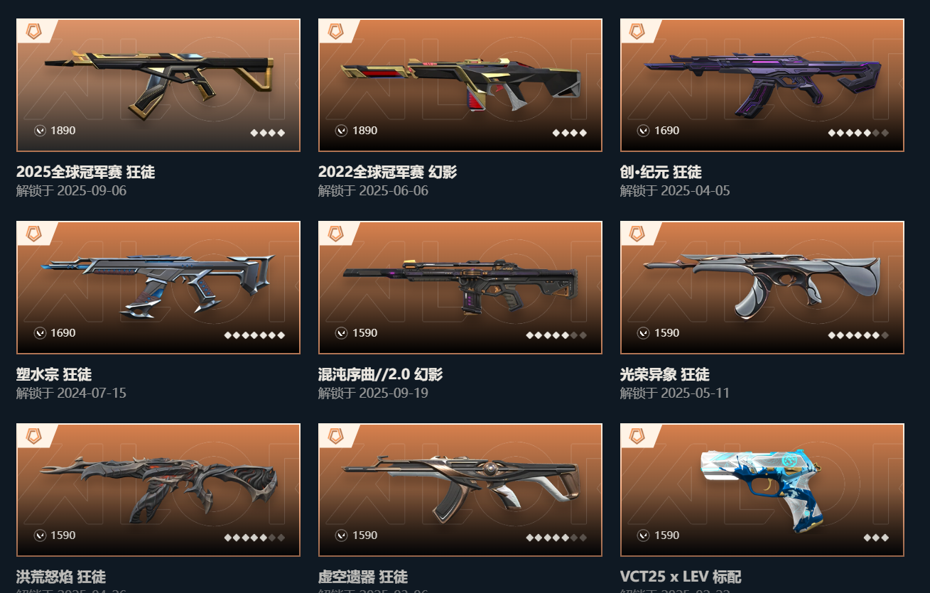 6W22冠军套25冠军套显卡爪光荣流脓混沌宿水宗归零狂徒混沌2.0幻影离子侦察奇点西部正义;威龙之刃,虚空遗器 狂徒,洪荒怒焰 狂徒,侦察力量 幻影,紫阙金琅 狂徒,天界神兵 戍卫,堕天遗武 狂徒,