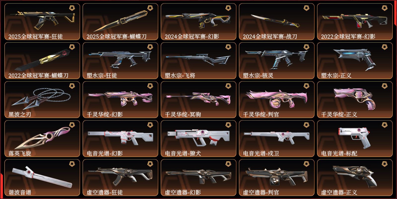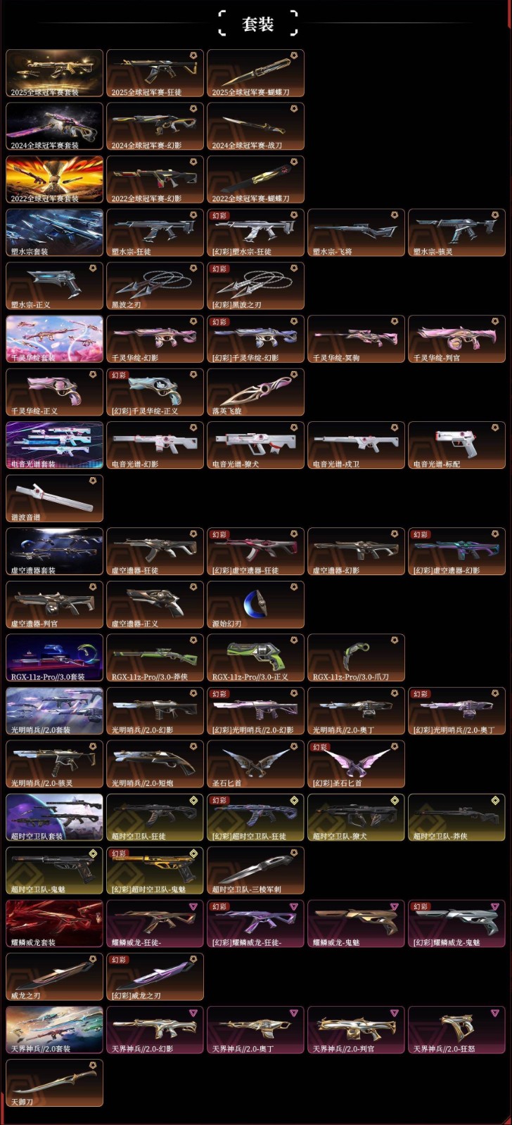 ~~~~~~~~~~~~~~若是游戏登陆失败,大概率为授权有问题,非凌晨时间请撤单等待几分钟,号主会尽快重新授权上架!!!!~~~~~~~~~~~~ 【拥有套装】超时空卫队套装(超时空卫队-狂徒,超时空卫队-獠犬,超时空卫队-莽侠,超时空卫队-鬼魅,超时空卫队-三棱军刺)2022全球冠军赛套装(2022全球冠军赛-幻影,2022全球冠军赛-蝴蝶刀)电音光谱套装(电音光谱-幻影,电音光谱-獠犬,电音光谱-戍卫,电音光谱-标配,谐波音谱)虚空遗器套装(虚空遗器-狂徒,虚空遗器-幻影,虚空遗器-判官,虚空遗器-正义,源始幻刃)千灵华绽套装(千灵华绽-幻影,千灵华绽-冥驹,千灵华绽-判官,千灵华绽--正义,落英飞旋)塑水宗套装(塑水宗-骇灵,塑水宗-狂徒,塑水宗-飞将,塑水宗-正义,黑波之刃)光明哨兵2.0套装(光明哨兵//2.0-幻影,光明哨兵//2.0-奥丁,光明哨兵//2.0-骇灵,光明哨兵//2.0-短炮,圣石匕首)2025全球冠军赛套装(2025全球冠军赛-狂徒,2025全球冠军赛-蝴蝶刀 )2024全球冠军赛套装(2024全球冠军赛-幻影,2024全球冠军赛-战刀)RGX-11z-Pro//3.0套装(RGX-11z-Pro//3.0-莽侠,RGX-11z-Pro//3.0-正义,RGX-11z-Pro//3.0-爪刀)天界神兵2.0套装(天界神兵//2.0-幻影,天界神兵//2.0-奥丁,天界神兵//2.0-判官,天界神兵//2.0-狂怒,天御刀)耀鳞威龙套装(耀鳞威龙-狂徒,耀鳞威龙-鬼魅,威龙之刃) 【拥有近战武器】星际猎兵-短剑,阿特拉斯指挥部-甩棍,5周年//公测重制版-苍龙之刃,日耀风暴-遗器,诡秘蛇影-军刀,神罚//2.0-战锤,神圣领域-战刀,VCT-2025-爪刀,荒土机兵-热能刀,超限闪存-匕首,神罚-军刀,超能偶像-应援棒,流星兵团-短剑,珍珠棘贝-短剑,钢轨卫士-战锤,沙尘幻旅-匕首,合金战车-军刀,离火刃,紫金爪刀,剥皮小刀,夜之蝴蝶, 【拥有步枪】滋滋X特攻队-狂徒,光荣异象-狂徒,RGX-11z-Pro-狂徒,噬影者-狂徒,创·纪元-狂徒,混沌序曲-狂徒,洪荒怒焰-狂徒,全息波普//2.0-狂徒,机动狂飙-狂徒,偃月苍龙-狂徒,艾沃莉的梦之翼-狂徒,离子武器//2.0-狂徒,异鳞魔蛇-幻影,堕天遗武-狂徒,般若假面//2.0-狂徒,天界神兵-戍卫,盖世英雄-狂徒,紫阙金琅-狂徒,盖亚的复仇-狂徒,侦察力量-幻影,起源-狂徒,冰点凝冻-狂徒,源能者危机001-幻影,海洋之星-狂徒,日冕雄师-狂徒,掠影-狂徒,星际猎兵-幻影,阿特拉斯指挥部-狂徒,日耀风暴-幻影,诡秘蛇影-狂徒,神圣领域-獠犬,神圣领域-幻影,荒土机兵-狂徒,超限闪存-幻影,超能偶像-戍卫,超能偶像-狂徒,流星兵团-狂徒,珍珠棘贝-幻影,珍珠棘贝-戍卫,钢轨卫士-狂徒,钢轨卫士-戍卫,沙尘幻旅-狂徒,合金战车-幻影,光环序列-戍卫,瑰梦艺语-狂徒,悠闲猫生-幻影,太空穿梭-戍卫,悠闲猫生-獠犬,幻语魔咒-獠犬,甜蜜战术-戍卫,神罚//2.0-狂徒,折光棱晶-戍卫,末日之翼-幻影,月球哨兵-戍卫,逆冲蛮牛-獠犬,逆冲蛮牛-戍卫,纳米-幻影,模拟赫兹-獠犬,浮光跃金-戍卫,聚合之力-幻影,采蜜小蜂队-獠犬,战术熊与伙伴们-戍卫,复古浪潮-獠犬,战术小伙伴-獠犬,战术小伙伴-幻影,萌彩剪影-戍卫,胡桃狂想-獠犬,数码咒术-獠犬,花漾粉红-戍卫, 【拥有狙击枪】归零者-冥驹,堕天遗武-冥驹,星际猎兵-飞将,阿特拉斯指挥部-莽侠,诡秘蛇影-莽侠,荒土机兵-冥驹,超限闪存-莽侠,沙尘幻旅-飞将,合金战车-飞将,光环序列-冥驹,悠闲猫生-飞将,甜蜜战术-冥驹,幻语魔咒-飞将,末日之翼-飞将,星云暗涌-冥驹,月球哨兵-莽侠,模拟赫兹-冥驹,聚合之力-飞将,战术熊与伙伴们-飞将,纤云弄巧-莽侠,深海水族-莽侠,复古浪潮-冥驹,光导纤维-飞将,胡桃狂想-冥驹,花漾粉红-冥驹, 【拥有机枪】奇点-战神,日耀风暴-奥丁,神圣领域-战神,流星兵团-奥丁,光环序列-战神,太空穿梭-战神,末日之翼-奥丁,纳米-奥丁,浮光跃金-战神,采蜜小蜂队-战神,深海水族-战神,战术小伙伴-奥丁,萌彩剪影-战神,数码咒术-战神, 【拥有冲锋枪】无限竞技-骇灵,阿特拉斯指挥部-骇灵,日耀风暴-骇灵,荒土机兵-骇灵,超限闪存-蜂刺,流星兵团-骇灵,珍珠棘贝-骇灵,沙尘幻旅-骇灵,合金战车-蜂刺,瑰梦艺语-骇灵,折光棱晶-蜂刺,星云暗涌-蜂刺,星云暗涌-骇灵,浮光跃金-骇灵,聚合之力-蜂刺,纤云弄巧-蜂刺,深海水族-蜂刺,光导纤维-骇灵,战术小伙伴-蜂刺,胡桃狂想-蜂刺,花漾粉红-骇灵, 【拥有霰弹枪】紫阙金琅//2.0-雄鹿,星际猎兵-判官,诡秘蛇影-判官,超能偶像-判官,瑰梦艺语-雄鹿,太空穿梭-判官,甜蜜战术-判官,幻语魔咒-雄鹿,月球哨兵-雄鹿,逆冲蛮牛-雄鹿,纳米-判官,模拟赫兹-雄鹿,采蜜小蜂队-判官,复古浪潮-雄鹿,萌彩剪影-判官,数码咒术-判官, 【拥有手枪】天界神兵-鬼魅,紫阙金琅-标配,星际猎兵-标配,阿特拉斯指挥部-标配,日耀风暴-正义,诡秘蛇影-鬼魅,神圣领域-狂怒,荒土机兵-标配,超限闪存-正义,超能偶像-标配,浪漫雪国-标配,流星兵团-鬼魅,珍珠棘贝-狂怒,钢轨卫士-狂怒,钢轨卫士-短炮,沙尘幻旅-正义,弧光异彩-短炮,合金战车-正义,光环序列-狂怒,瑰梦艺语-鬼魅,太空穿梭-正义,悠闲猫生-短炮,甜蜜战术-鬼魅,幻语魔咒-狂怒,折光棱晶-标配,末日之翼-短炮,月球哨兵-正义,星云暗涌-鬼魅,逆冲蛮牛-狂怒,纳米-正义,浮光跃金-标配,模拟赫兹-鬼魅,聚合之力-狂怒,采蜜小蜂队-鬼魅,纤云弄巧-正义,战术熊与伙伴们-狂怒,纤云弄巧-短炮,战术熊与伙伴们-标配,复古浪潮-正义,深海水族-短炮,光导纤维-鬼魅,光导纤维-标配,萌彩剪影-狂怒,胡桃狂想-鬼魅,数码咒术-鬼魅,花漾粉红-狂怒, 【稀有挂件】无畏契约GO芮娜挂饰,无畏契约GO奇乐挂饰,无畏契约GO零挂饰,无