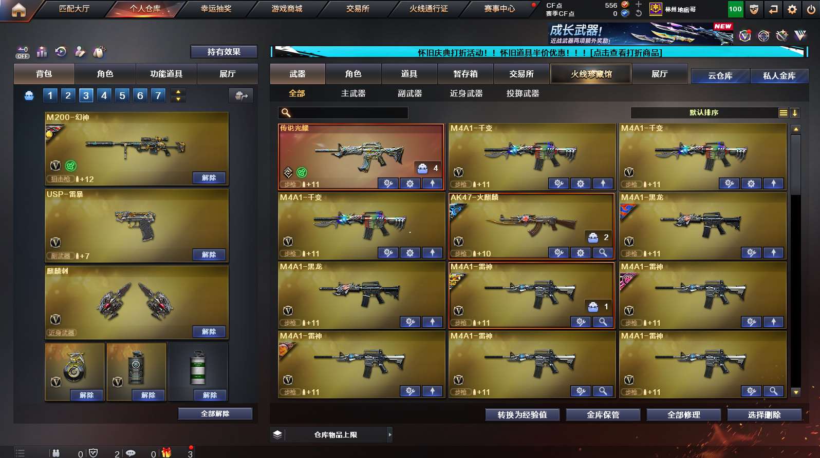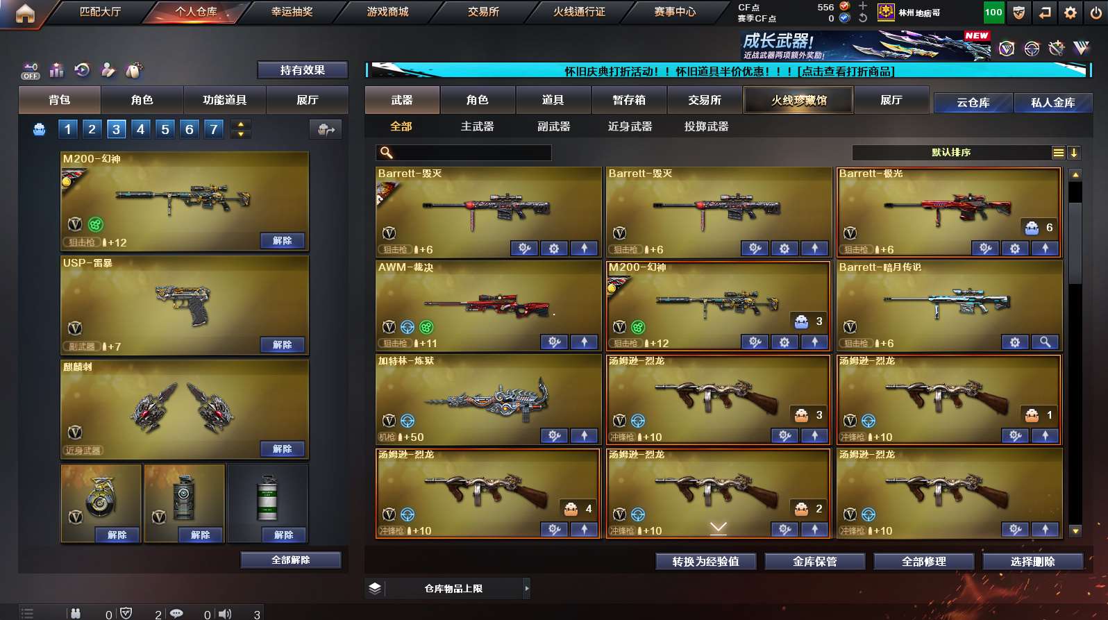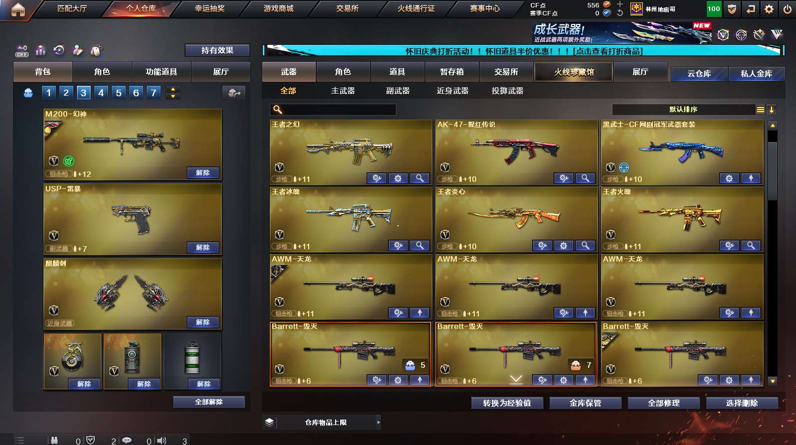 《传说光耀》《m200幻神➕幻神ags17》《裁决》《王者幻神》《usp雷暴》《网剧套》《夜魔套》《雷暴套》《王者火魄/冰魄》《王者炎心》《朱雀》《青龙》《qbz金色蔷薇》《烈火》《m4猎神》《毁灭》《火麒麟》《黑龙》《雷神》《黑骑士》《炼狱 5烈龙 斯泰尔蝴蝶》《火麒麟绝迹 火麒麟灵狐 雷神小红 天龙曼陀罗 cop白鲨》《cop旗袍 1911大黄蜂》《凌霄 王者瞳闭月羞花 四防灵狐者职业经理》《毁灭音效卡 火麒麟音效卡 黑骑士音效卡 雷神音效卡》《雷神烈虎 黑骑士摸金校尉 雷神宠儿 天龙70kg 雷神荣耀之魄 毁灭s16 雷神冠军之魄 雷神s19》;USP-雷暴,QBZ03-金色蔷薇,M200-幻神,