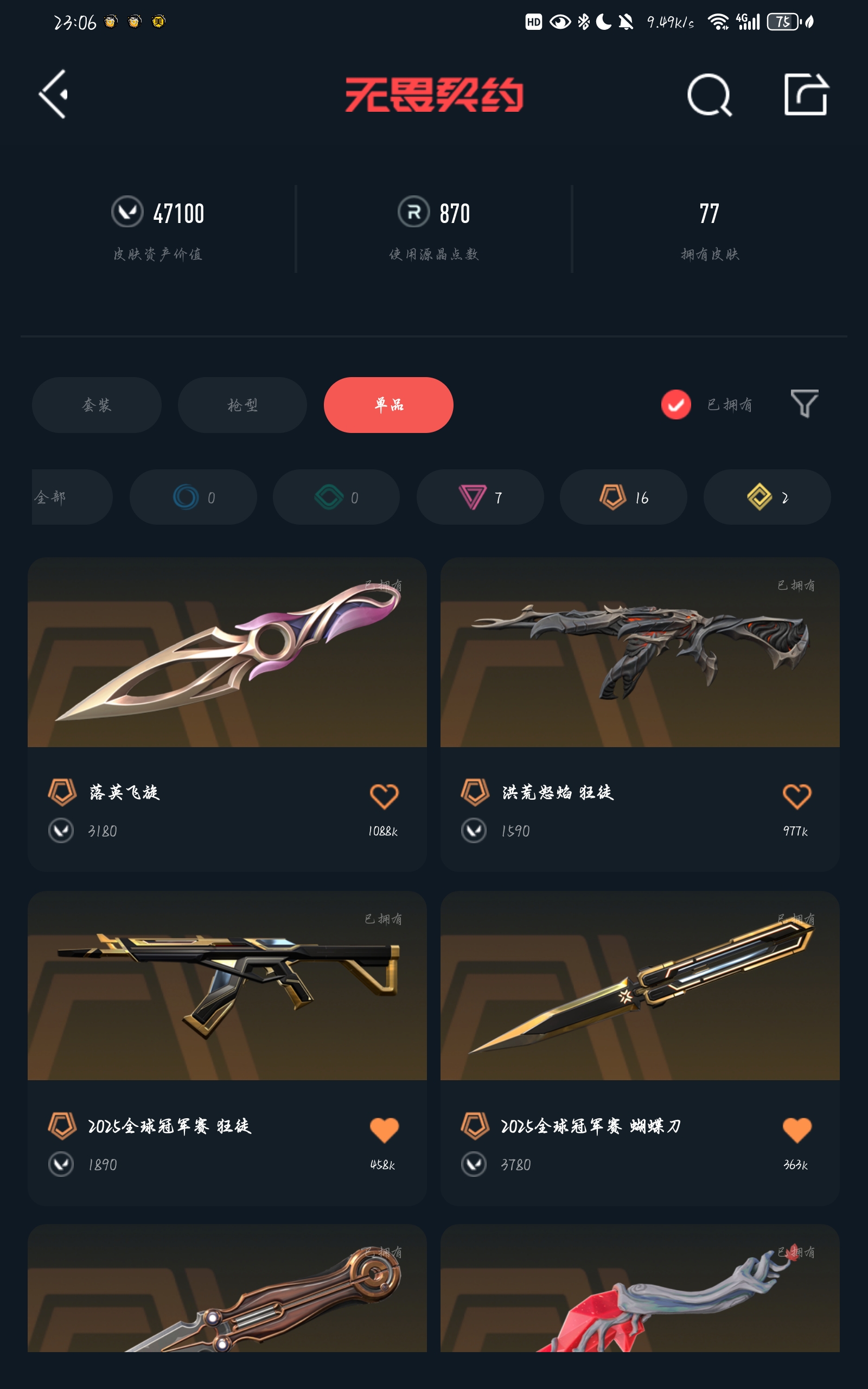 AK混沌洪荒掠影猫猫25冠奇点等、M4侦查莲花、刀朋克莲花25冠军镭切盖亚之愠、其他枪大半有好皮
