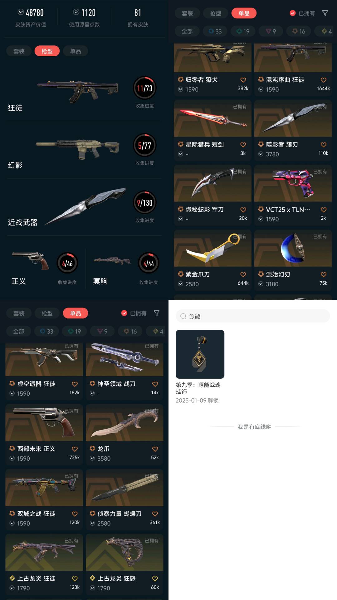 1;紫金爪刀,上古龙炎 判官,归零者 獠犬,盖亚的复仇 狂徒,虚空遗器 狂徒,噬影者 狂徒,侦察力量 幻影,