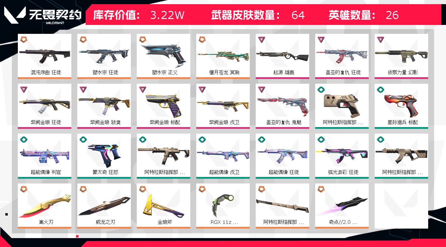 • 皮肤资产价值: 32235