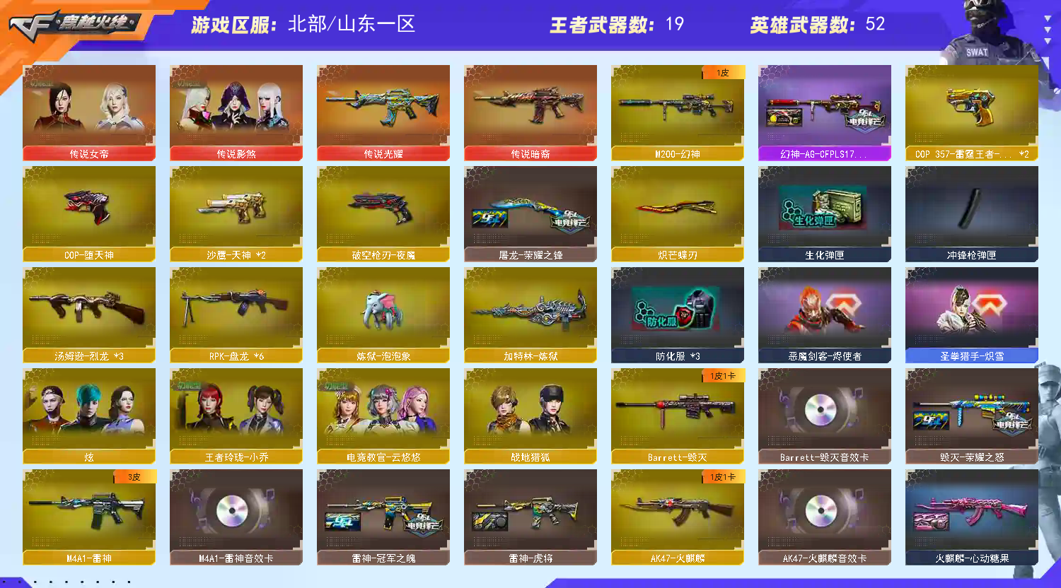 • 游戏区服:穿越火线 / 北部 / 山东一区