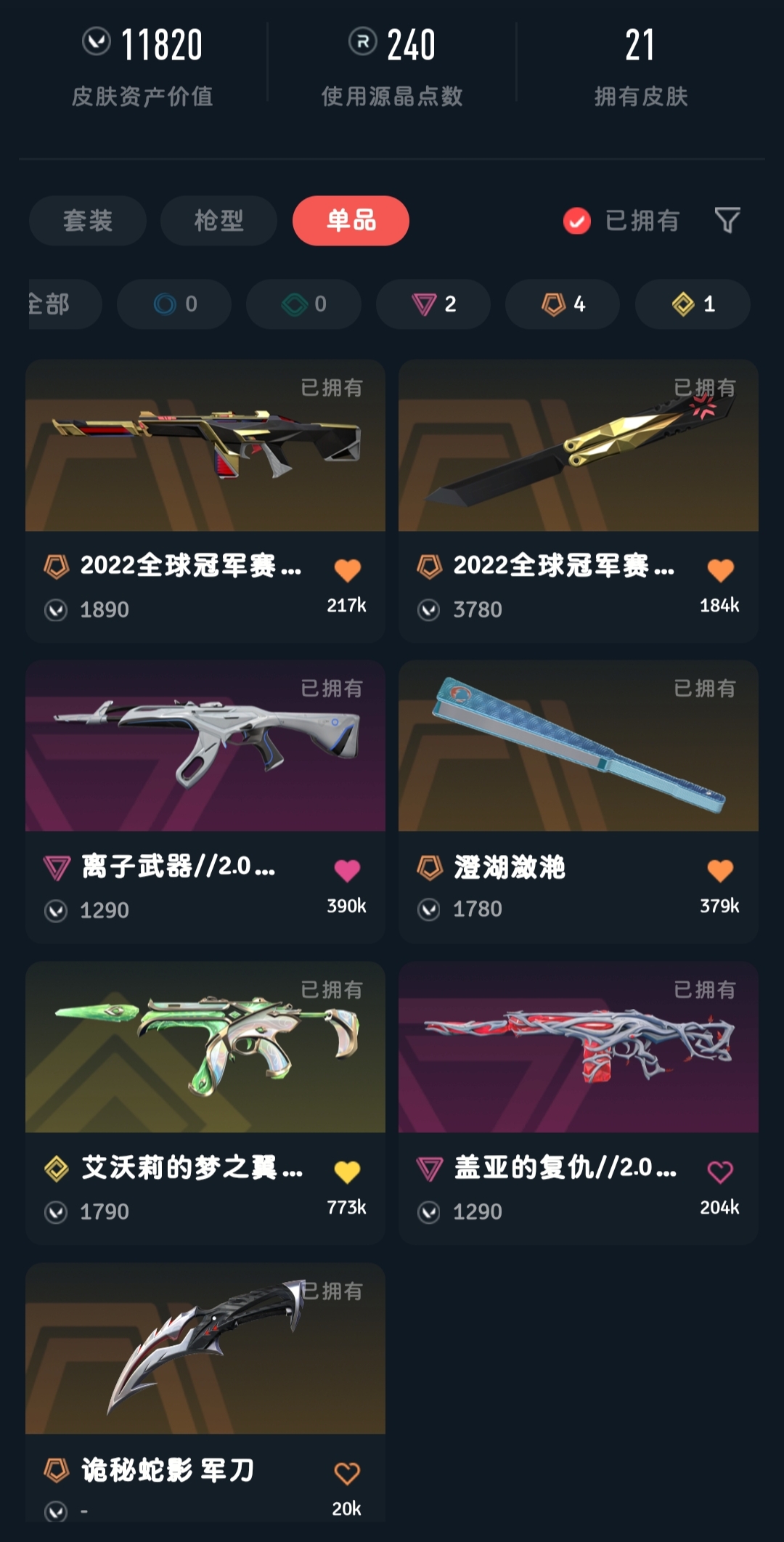 武器皮肤数量 21 英雄数量 15.离子武器//2.0 狂徒V4
