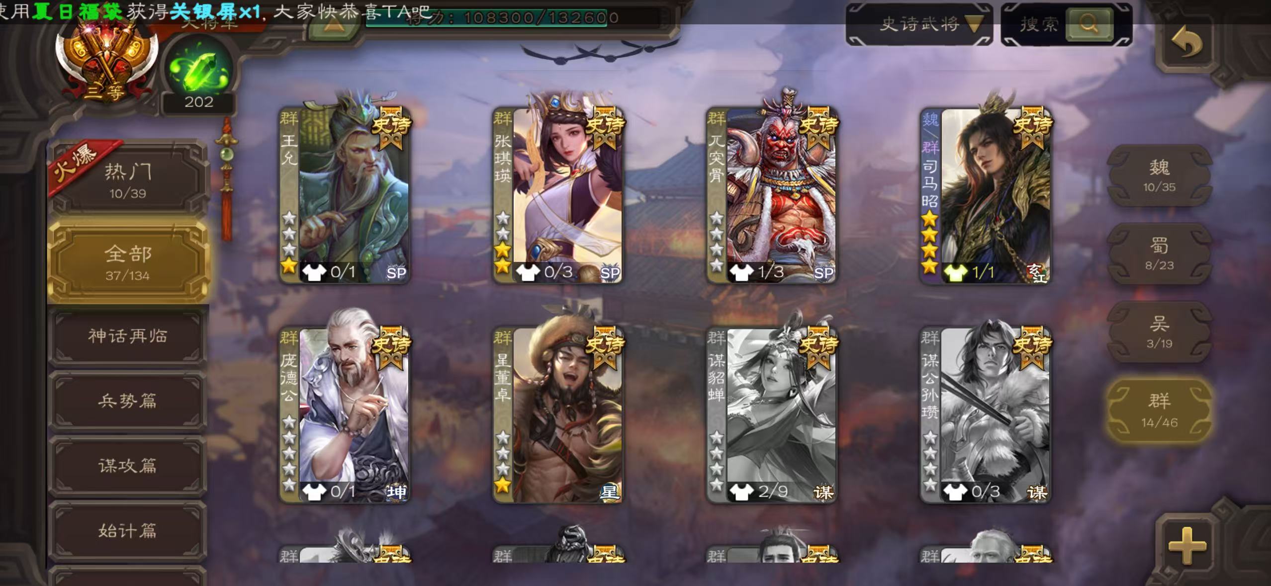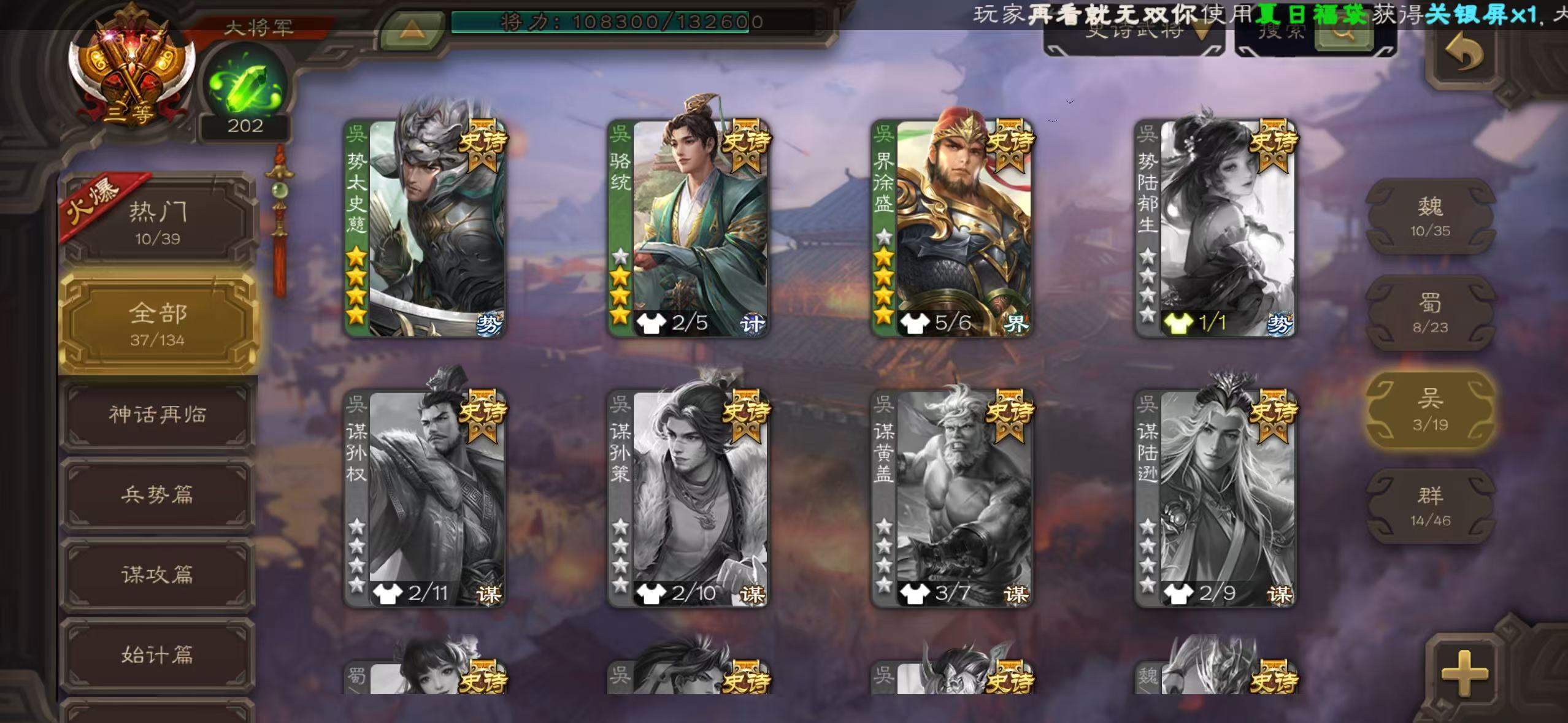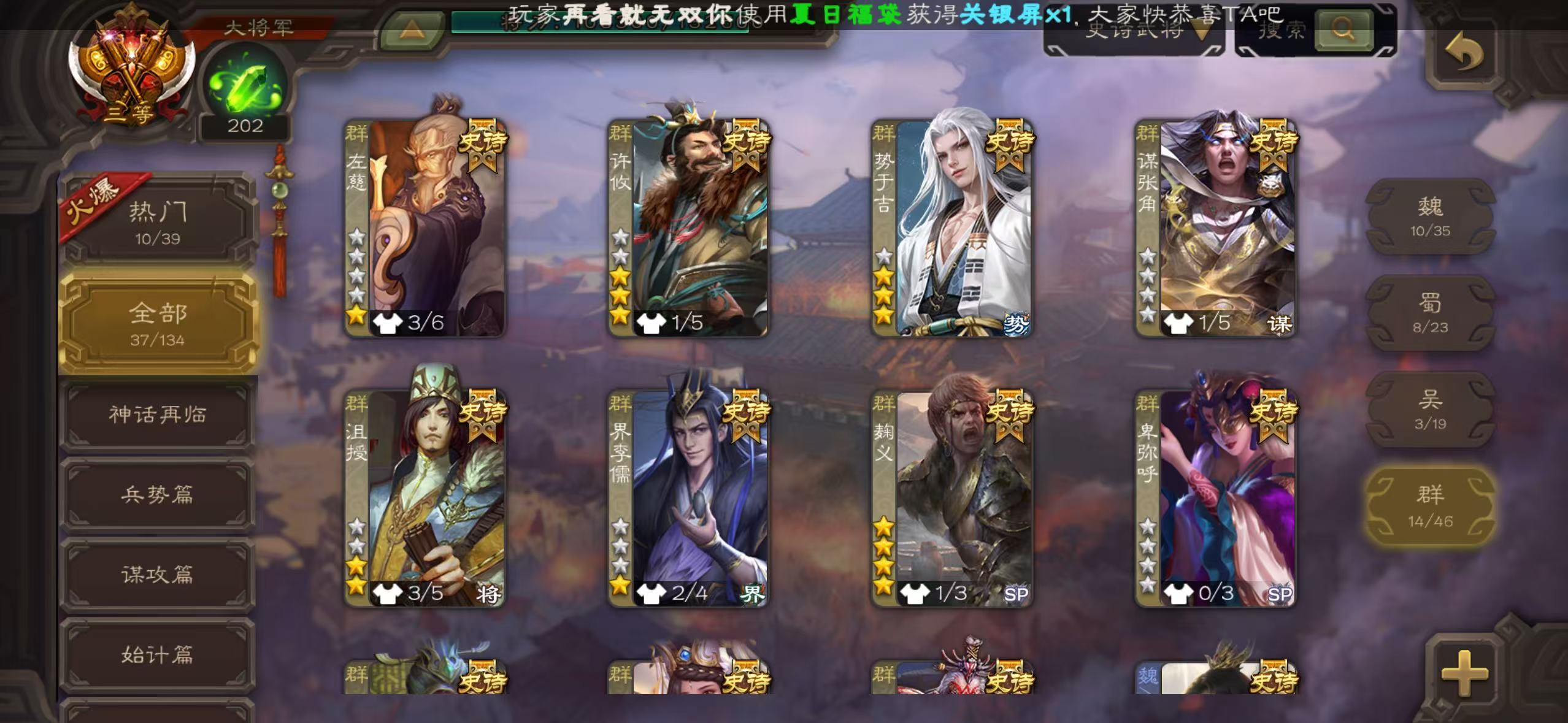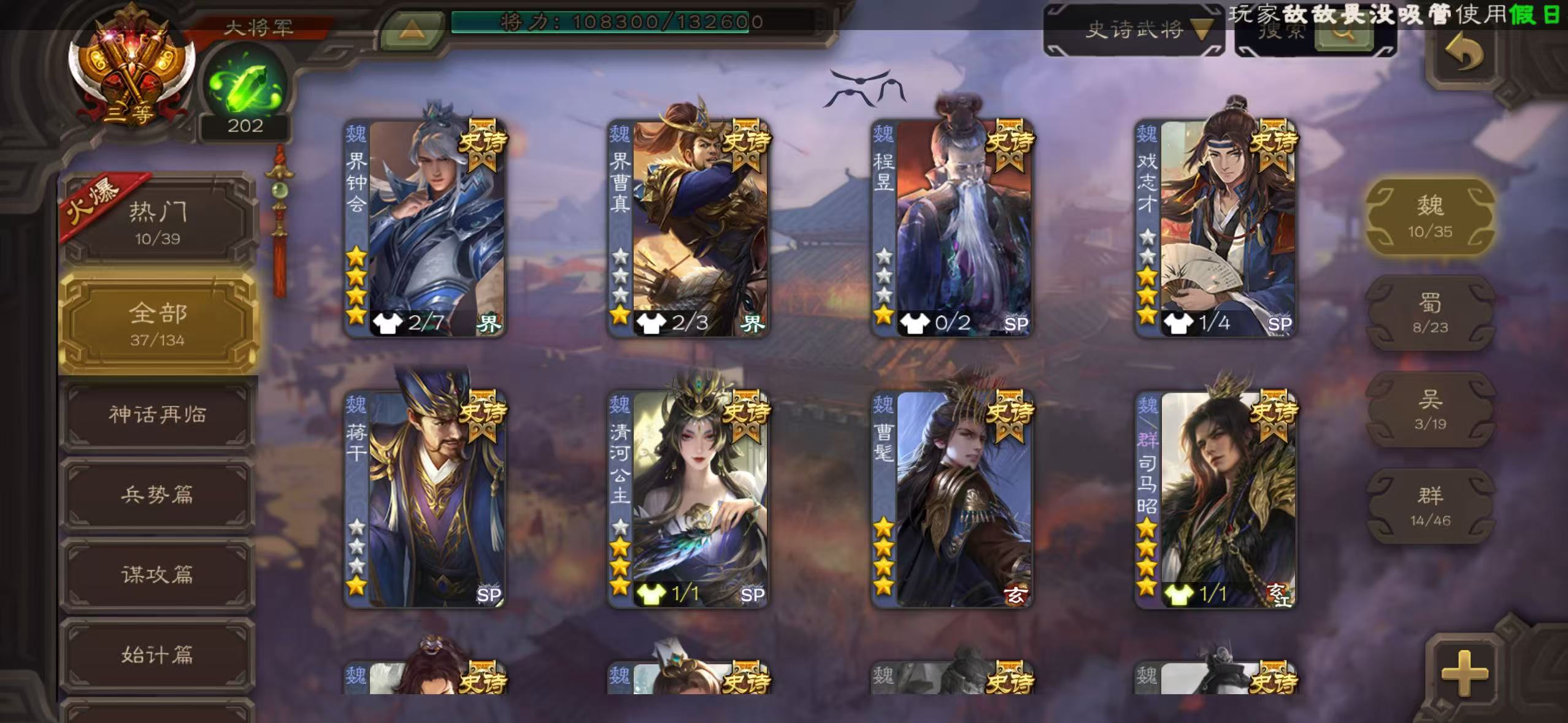 有卡有豆10万/势魏延 Y1💛 /势太史慈/曹髦/动司马昭/动谋诸葛/动清河公主/势于吉禁止高倍场