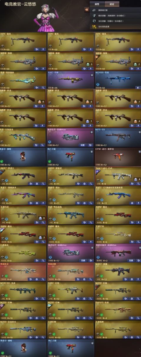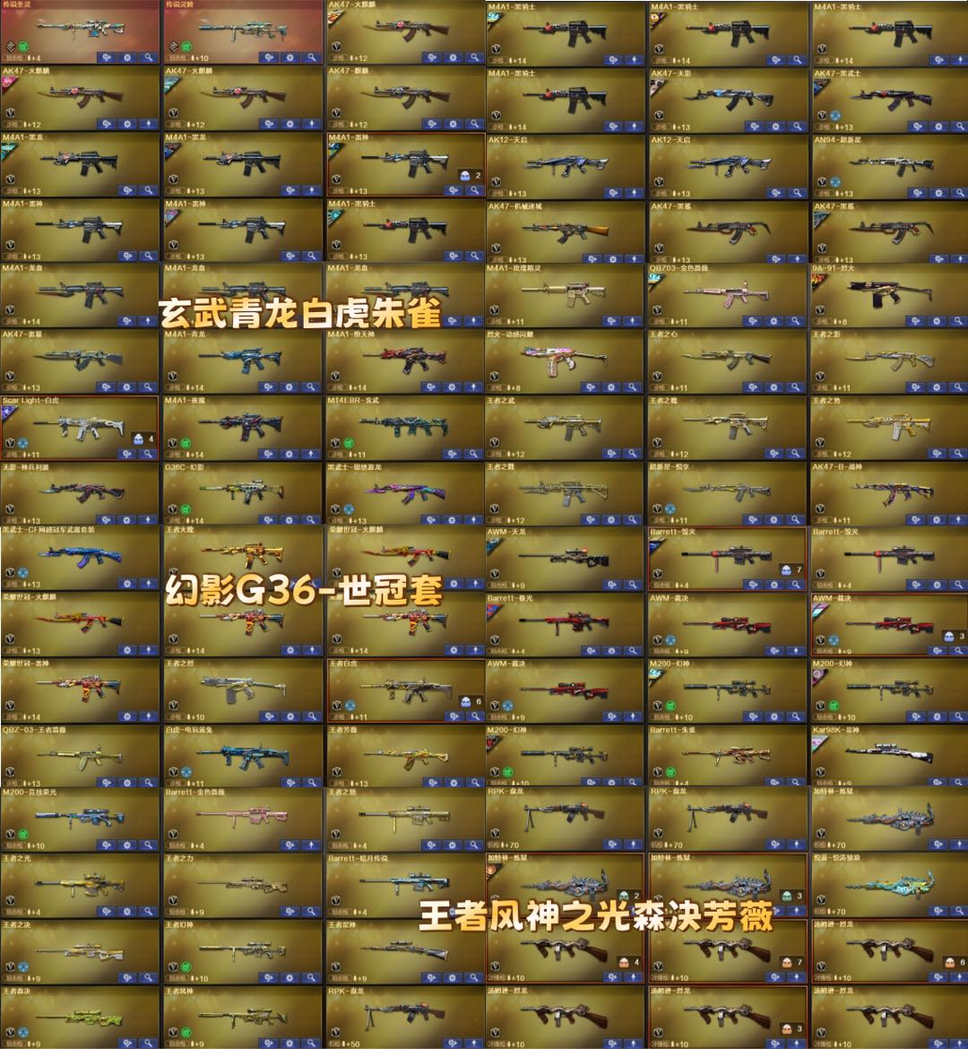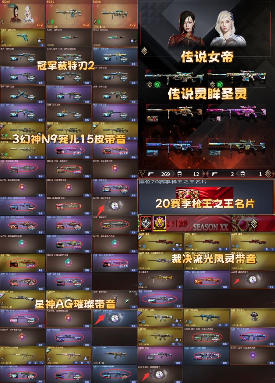 女帝狙击卡齐全15色幻神卡❤️20把副武❤️枪王之王名片❤裁决三件套❤6盘6烈蝴蝶❤星神AG带皮音