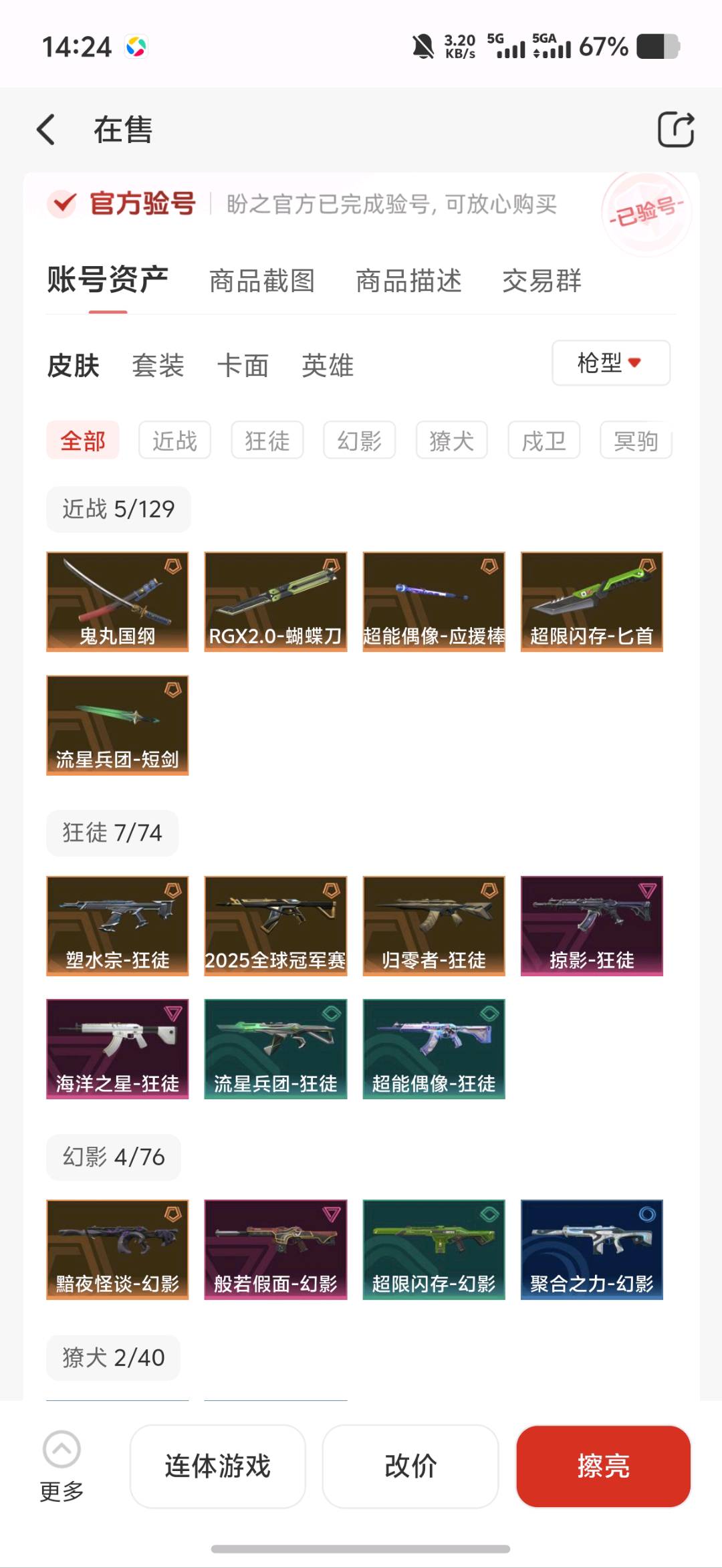 首页 > 租号大厅 > 无畏契约-wegame > wegame/wegame > 禁止炸鱼,解封请维权找我,皮肤61,鬼玩国纲,显卡蝴蝶刀。狂徒:塑水,25冠,归零者,鱼缸,奇点正义