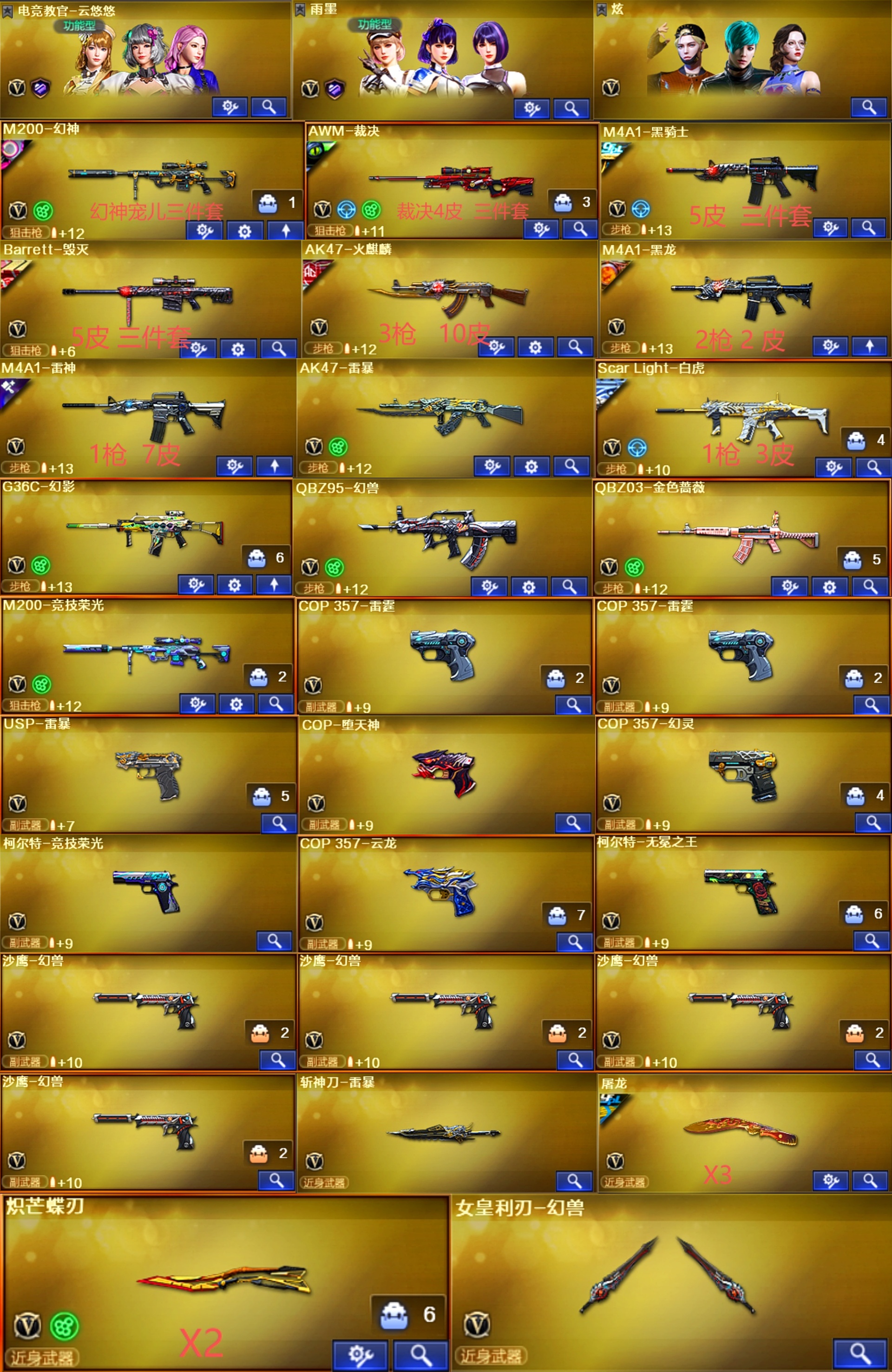 账号开挂追责 后台看的一清二楚!!!! 不要有侥幸心理 开挂是犯罪行为!!!! 退排位 永久拉黑;USP-雷暴,柯尔特-无冕之王,炽芒蝶刃,电竞教官-云悠悠,RPK-盘龙,QBZ03-金色蔷薇,G36C-幻影,
