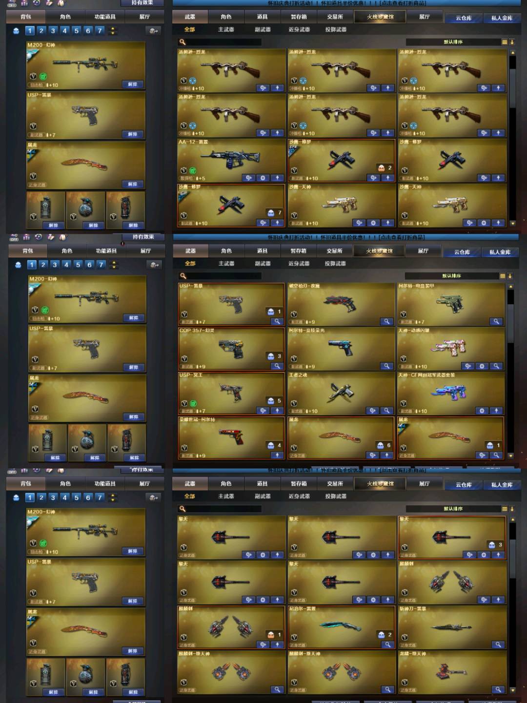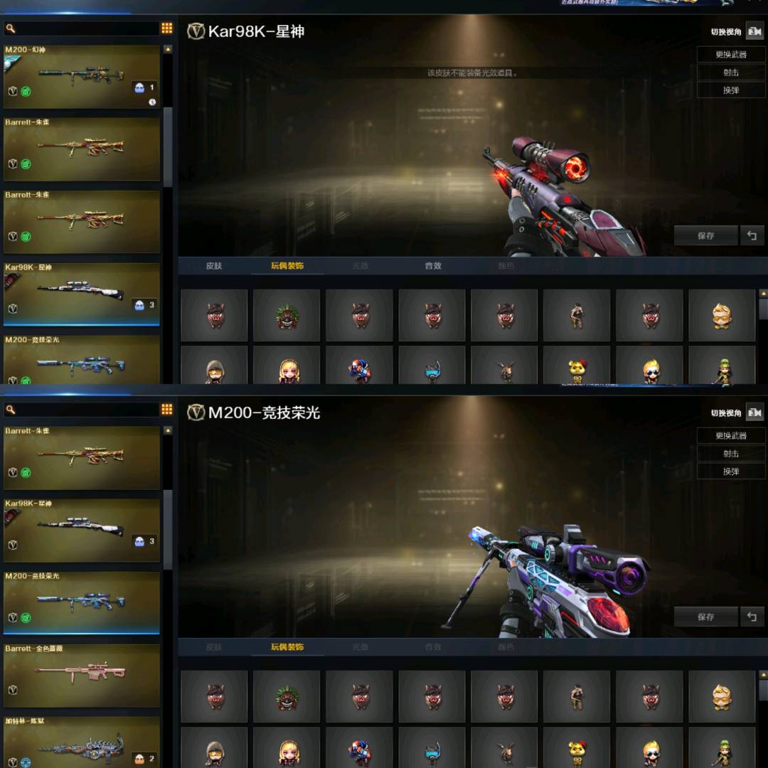 传说星骇 传说圣谕 传说光耀 裁决音效卡 星神黯钢战甲 幻神音效卡;USP-雷暴,荣耀世冠-柯尔特,传说星骇,电竞教官-云悠悠,QBZ03-金色蔷薇,M200-幻神,Scar Light-白虎,