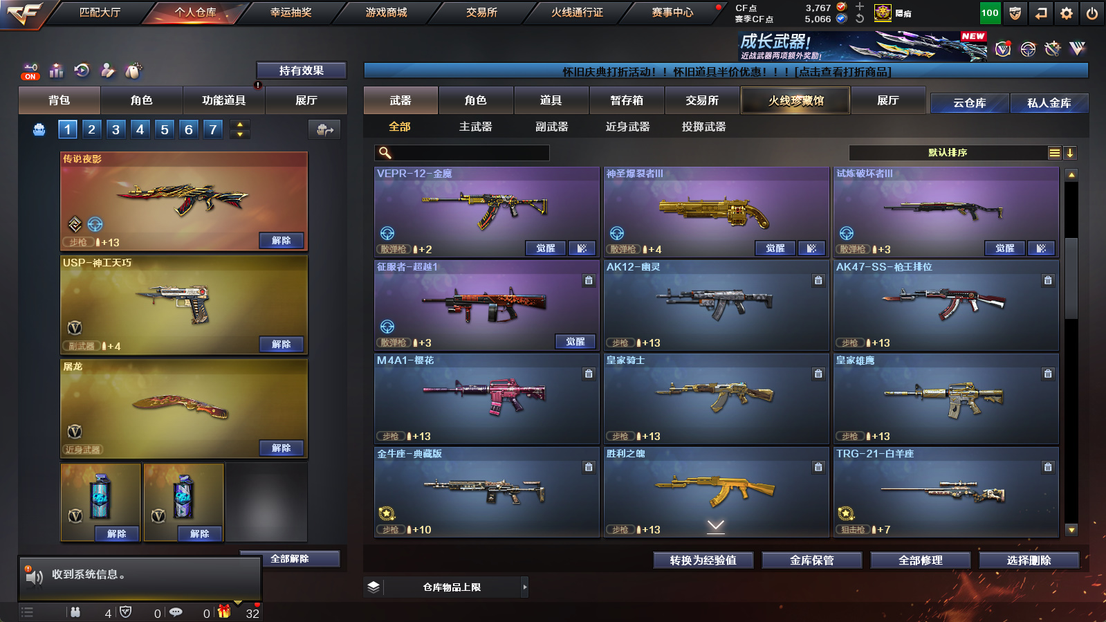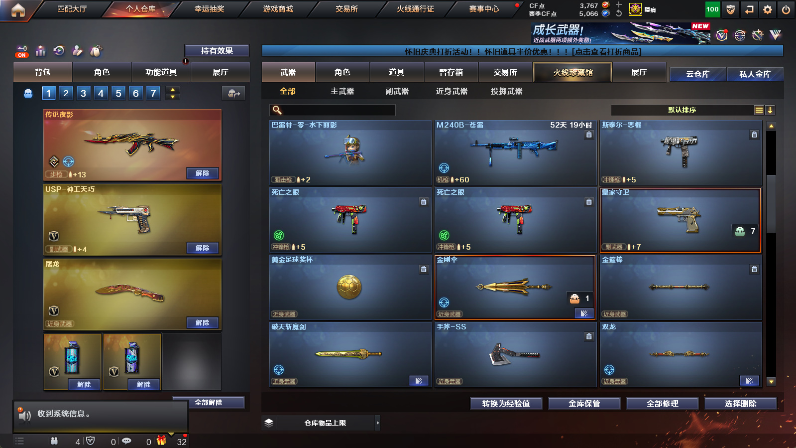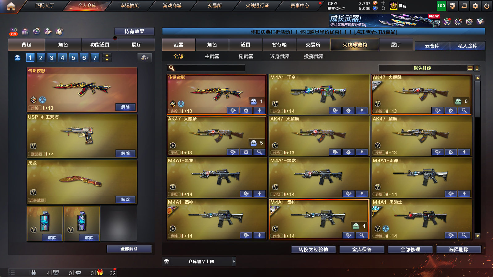 【传说夜影】【m200幻神+幻神黄忠+幻神电流骇客+幻神动感闪耀音效卡】【星神】【m200竞技荣光】【柯尔特竞技荣光+usp神工天巧+1911大黄蜂】【金刚伞+猫猫手套】【竞技荣光套】【白虎+朱雀】【qbz金色蔷薇】【毁灭】【王者火魄】【王者雷怒】【火麒麟】【黑龙】【雷神】【黑骑士】【m4死神】【无影神兵利器】【烈火】【m4赤狱骑士】【爆炎激光超越max+火域超越max+地狱征服者max+aa12擎天柱】【炼狱迷你小钢】【6盘+6烈+2炼狱】【四防王者瞳闭月羞花+满配乔伊教练+职业选手+职业选手n9语音包】【白虎音效卡+黑龙音效卡+毁灭音效卡+黑骑士音效卡】【黑骑士伏羲+火麒麟巅峰荣耀+雷神s18冠军+雷神传奇n9+黑骑士冠军之势+雷神荣耀之魄】【闪光护目镜/超级背包/炫彩背包/a背包套装扩展/b背包套装扩展/永久ac/永久工具钳/永久手雷包】;RPK-盘龙,QBZ03-金色蔷薇,M200-幻神,Scar Light-白虎,Kar98K-星神,