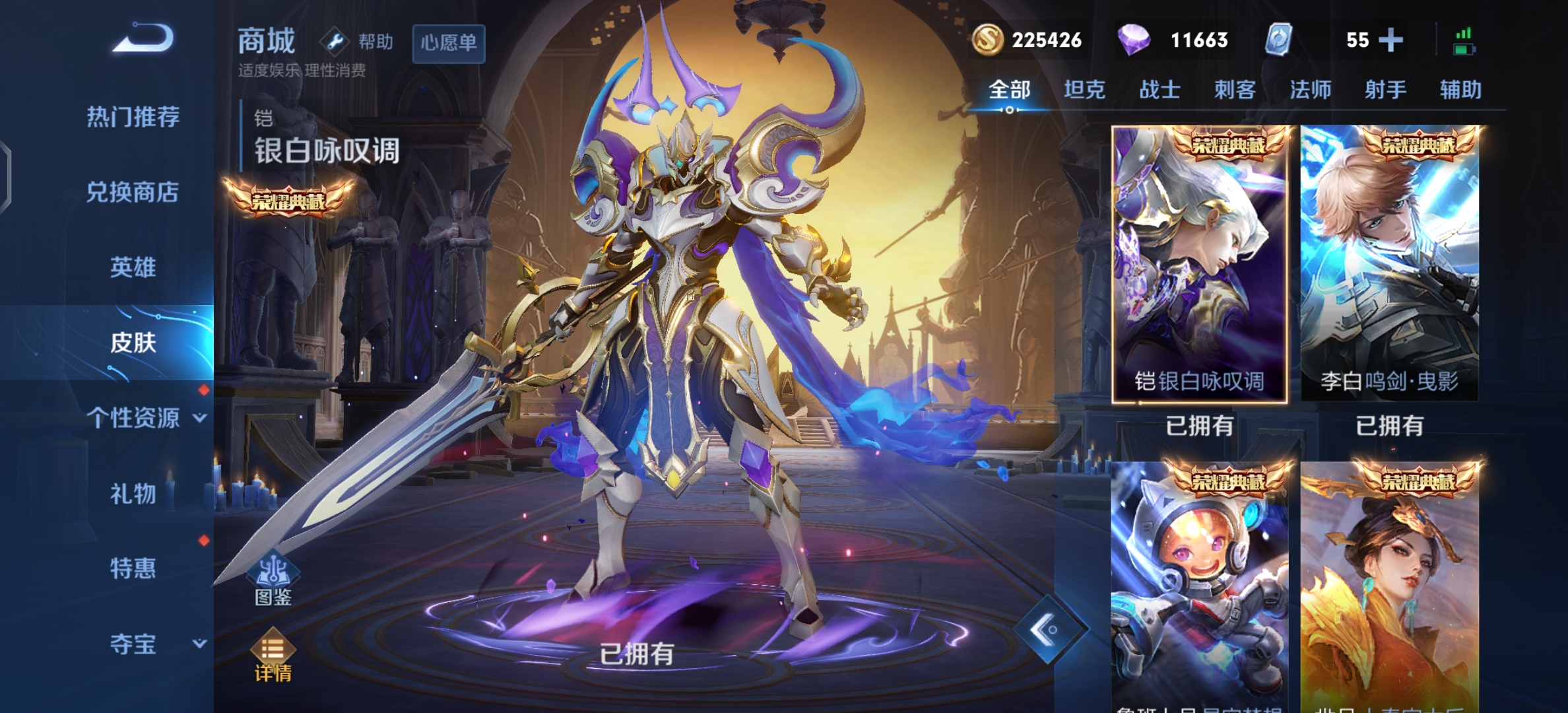 上不去看最后一张图贵族10,635皮伽罗典藏112传说,群星魔术团,落雪白狼,龙年全满,曦炫引,战鼓燎原时之奇旅,隐龙天啸,妄想实况,琥珀纪元