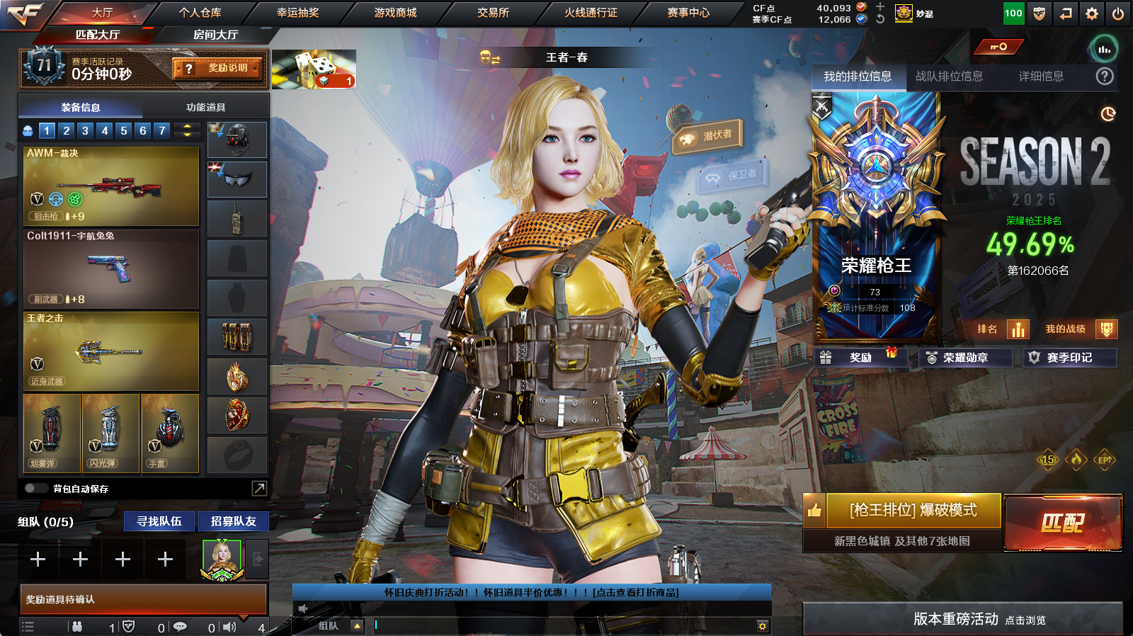 • 游戏区服:穿越火线 / 电信区 / 广东一区