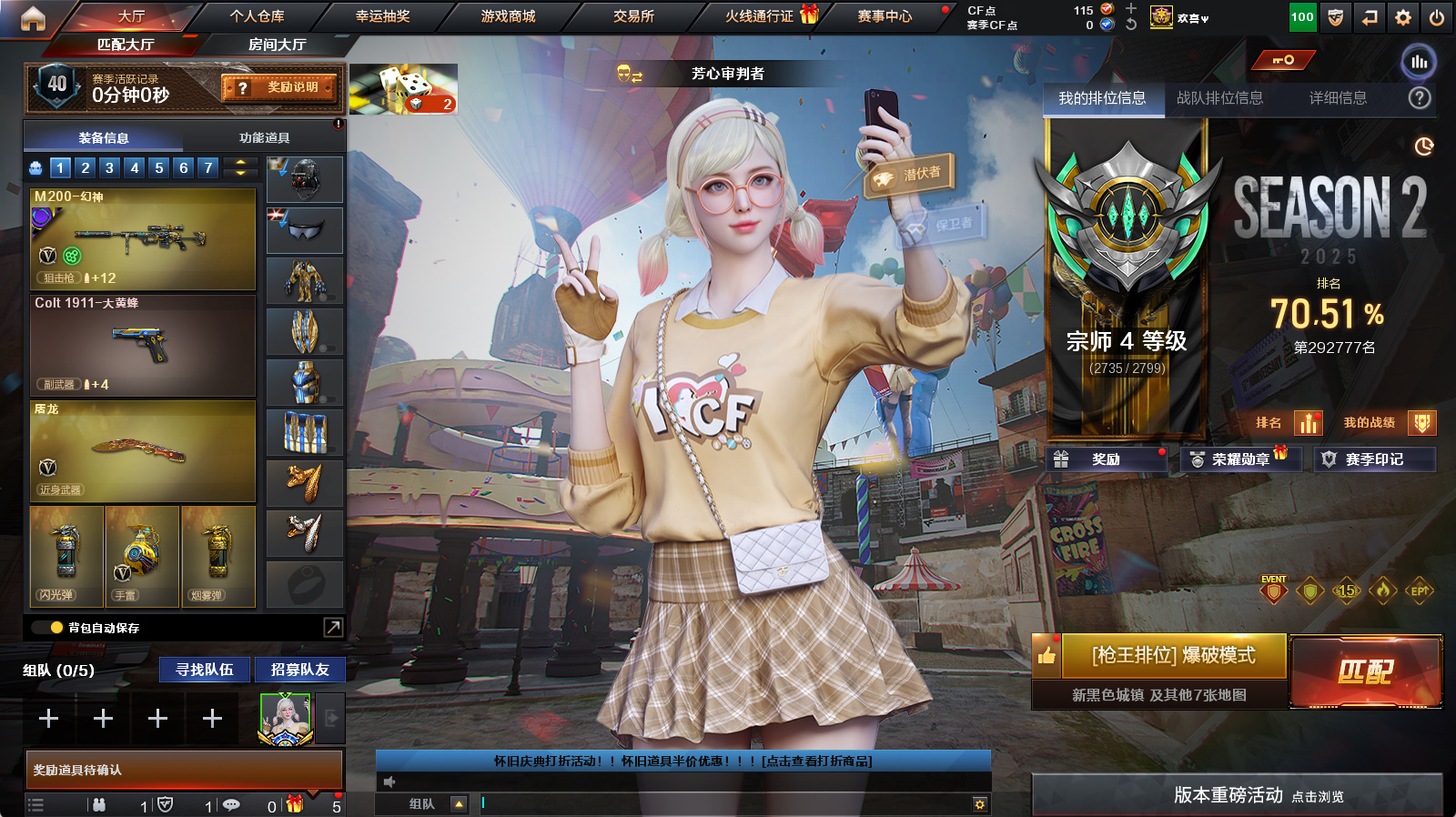 • 游戏区服:穿越火线 / 电信区 / 江苏一区