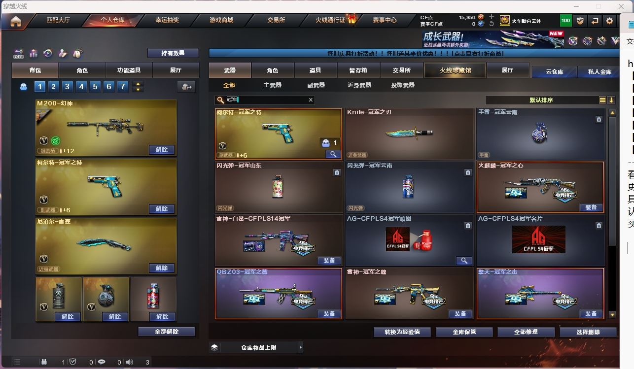 【m200幻神+黄忠+冠军之特+冠军之刃】【王者星神】【王者白虎】【qbz金色蔷薇+卡+冠军之薇】【火麒麟+卡+冠军之心】【黑龙+冠军之武】【雷神+卡+冠军之魄+荣耀之魄】【黑骑士】【毁灭+卡+cfs2018+荣耀之怒】【极光】 【武器:王者之魄 王者之势 王者之心 白虎电玩蓝兔 海王 盘龙*2 烈龙*4】 【5手枪:修罗*4 冠军之特 】 【7刀具:屠龙*2 龙啸 擎天 麒麟刺 尼泊尔雷霆 王者之击 】 【雷套:雷霆雷*2】 【小人枪:雷神精英刀锋 】 【音效卡:毁灭音效卡 雷神音效卡 金色蔷薇音效卡 火麒麟音效卡 】 【四防角色:王者沙漠玫瑰 】;柯尔特-冠军之特,Knife-冠军之刃,王者沙漠玫瑰,RPK-盘龙,QBZ03-金色蔷薇,M200-幻神,