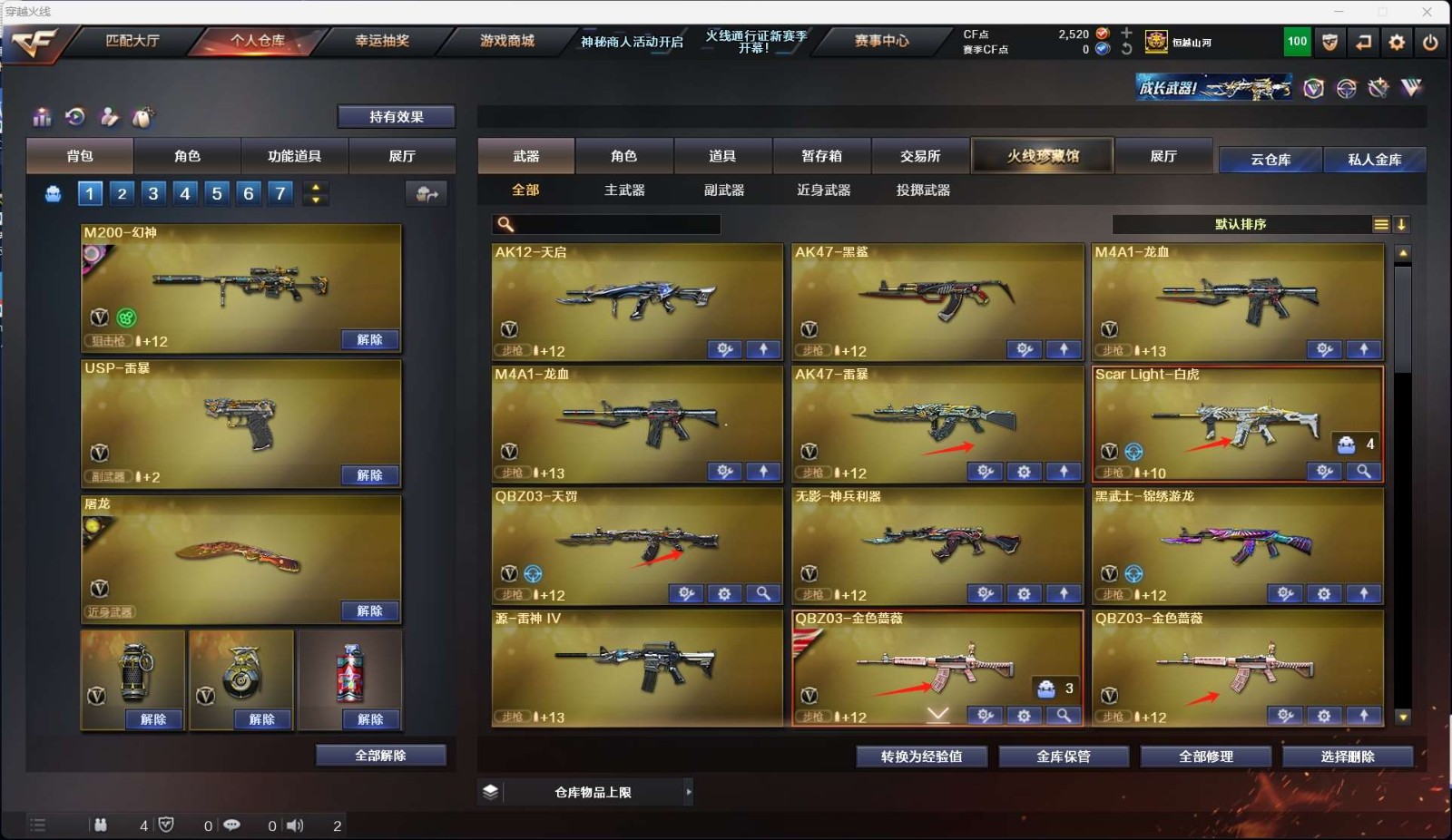 【幻神3件套!!!】【金色蔷薇3件套!!!】【m200幻神+幻神音效卡+宠儿皮肤+荣耀世冠白鲨皮肤+丹凤皮肤+柯尔特冠军之特+usp雷暴+传说影煞】【98k星神+璀璨皮肤】【白虎+白虎音效卡+王者白虎】【qbz03金色蔷薇+金色蔷薇音效卡+呛娘皮肤+qbz03天罚】【6烈龙+1炼狱+斯泰尔蝴蝶】【雷暴套装】【毁灭+毁灭音效卡+冠军之怒皮肤+荣耀之怒皮肤】【雷神+雷神音效卡+荣耀之魄皮肤+传奇n9皮肤】【黑骑士+黑骑士音效卡+冠军之势皮肤】【火麒麟+冠军之心皮肤】【王者冰魄 王者之魄 王者之武 王者之光】【烈火 天启 战神 黑鲨 无影 黑龙 龙血 黑骑士海王 无影神兵利器 黑武士 黑武士锦绣游龙 天龙 裁决 】——【热门武器/小人呛】【斯泰尔蝴蝶 芭蕾特零水下丽影 cop白鲨 】——【柯尔特冠军之特 usp雷暴 柯尔特电竞装甲 天神 修罗 王者之灵 】——【龙啸 尼泊尔电竞装甲 麒麟刺 擎天 王者之啸 斩神刀雷暴 云龙扇 】——【电竞装甲投掷武器套装+雷暴投掷武器套装*7+云龙投掷武器套装*2】——【角色】【传说影煞】【春 影豹 零 审判者 炫】;USP-雷暴,柯尔特-冠军之特,传说影煞,QBZ03-金色蔷薇,M200-幻神,Scar Light-白虎,Kar98K-星神,