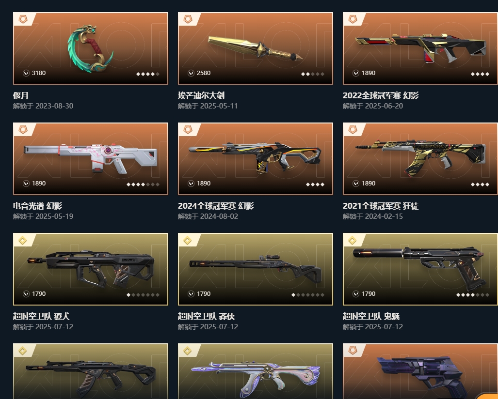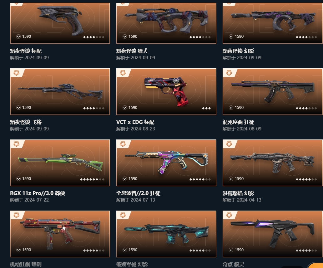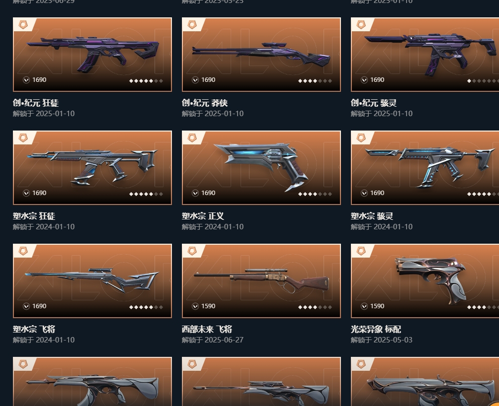 可排位 英雄27 武器皮肤数量248 刀25;奇点 战神,黑波之刃,镭切,威龙之刃,偃月苍龙 判官,噬影者 狂徒,掠影 狂徒,