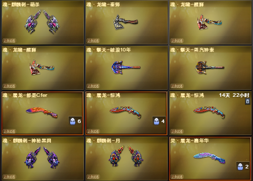 枪王、幻神、雷神动感闪耀、维纳斯、暗月皮肤、qbz及QBZ云龙套、炽芒蝶刃、6修罗、四防清雅、黑骑士战神马超皮肤、暗月皮肤