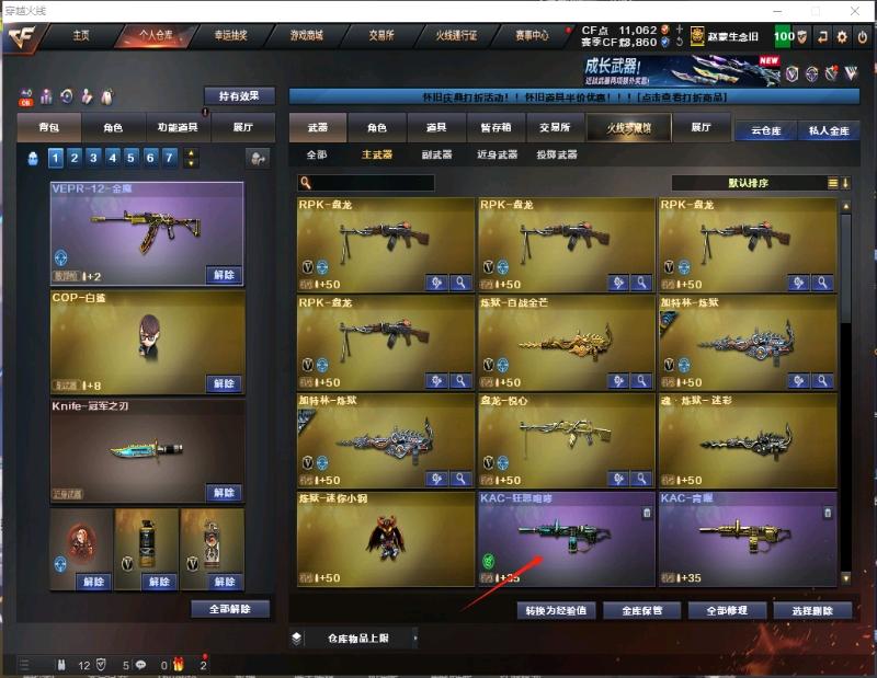 基本什么都有素质游戏;柯尔特-无冕之王,Knife-冠军之刃,隼,王者沙漠玫瑰,RPK-盘龙,QBZ03-金色蔷薇,M200-幻神,