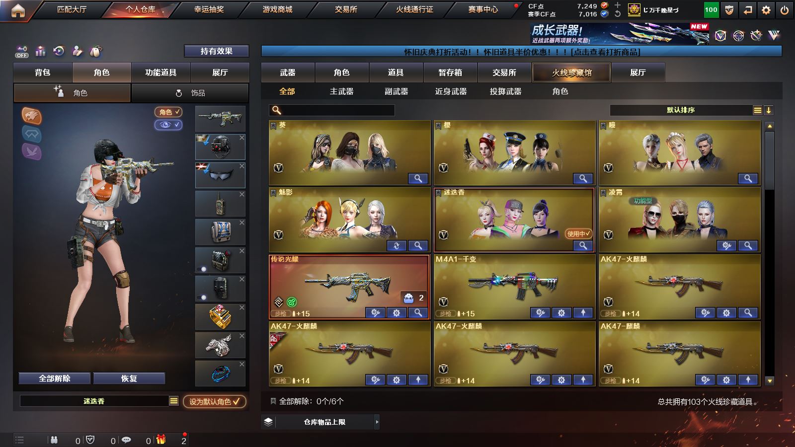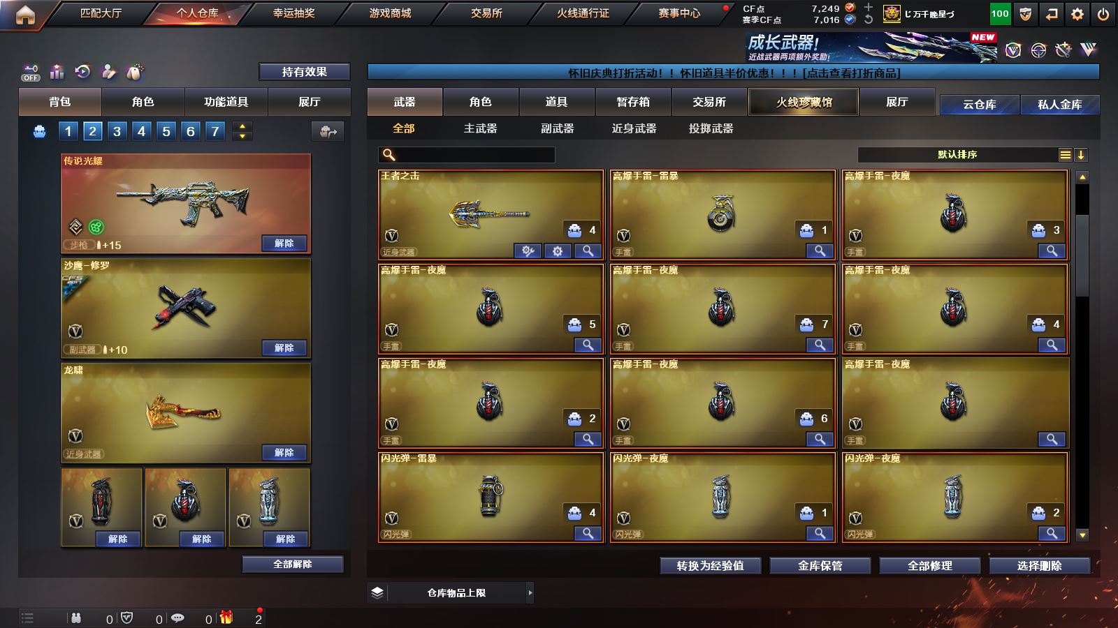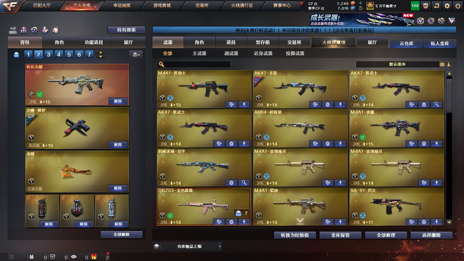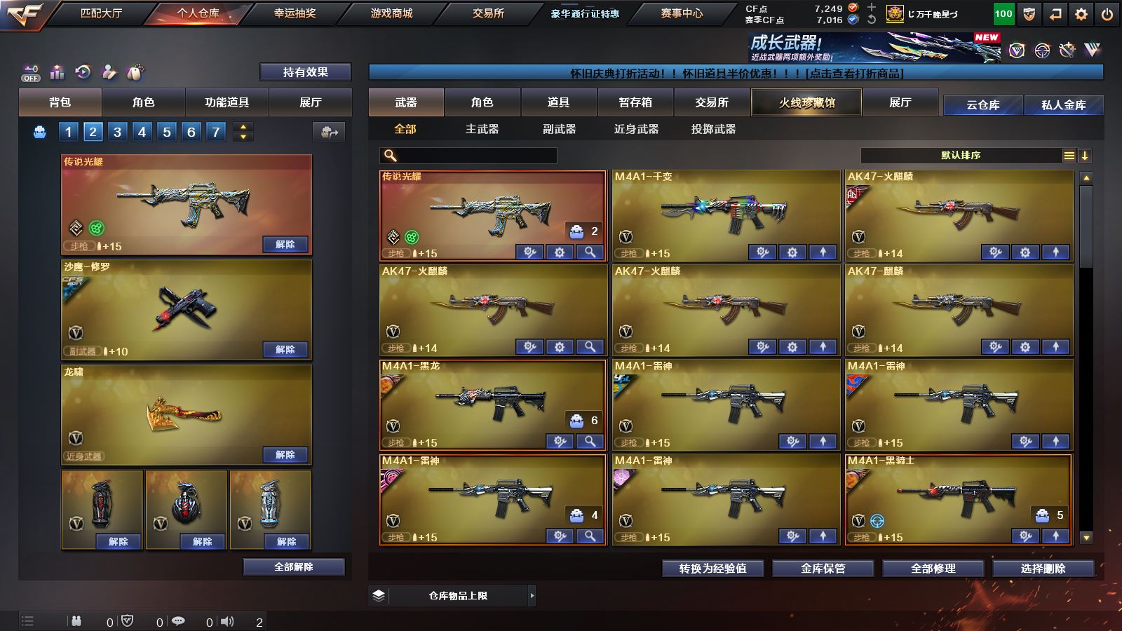 【M200幻神】【传说光耀】【6烈龙+盘龙】 【qbz03金色蔷薇】 【夜魔套装】 【王者炎心 王者之光 王者之魄 王者之鲨】【火麒麟+火麒麟音效卡】 【黑骑士+黑骑士音效卡】 【雷神+雷神音效卡+荣耀之魄+宠儿皮肤】 【毁灭+毁灭音效卡+荣耀之魄皮肤·】 【千变 无影 黑武士 超新星 穹宇 玫瑰精灵 猎神 烈火 猩红传说 战士 战神 天龙 极光 雷霆】——【沙鹰修罗 cop堕天神 破空枪刃夜魔】——【屠龙 龙啸 擎天 麒麟刺 战神刀雷暴 马来剑 王者之锋 王者之啸 王者之击】——【雷暴投掷武器套装 夜魔投掷武器套装*7】——【热门武器/小人枪】 【苍鸣雷神 掌上穿越火线 火麒麟零纪元 火麒麟灵狐 炫金天龙 CAT M37葵】——【角色】【雅典娜】【葵 凌霄 迷迭香 瞳 樱 魅影】;RPK-盘龙,QBZ03-金色蔷薇,M200-幻神,